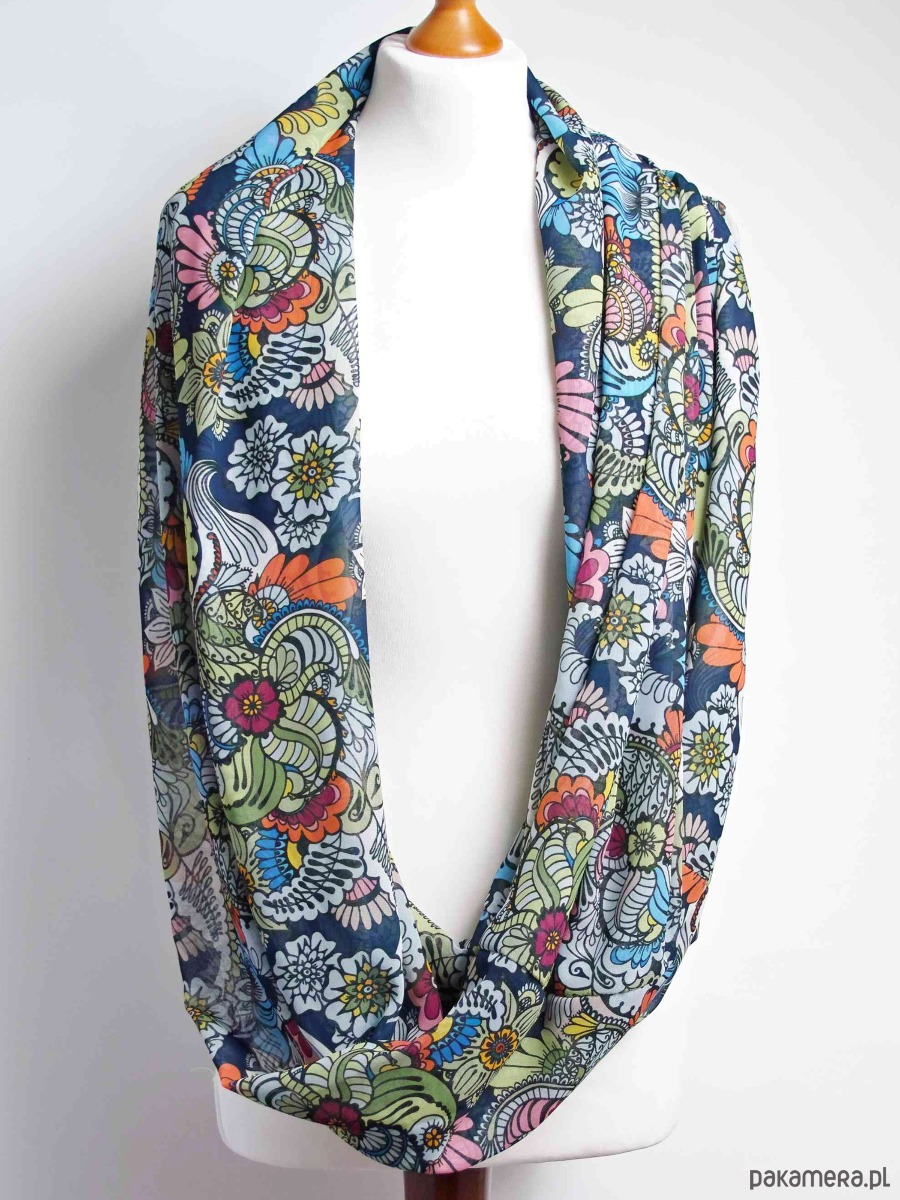 Cienki i delikatny komin z wzorzystej tkaniny. Komin ten nadaje się na okres wiosenny, letni i jesienny. Jest bardzo delikatny i zwiewny.