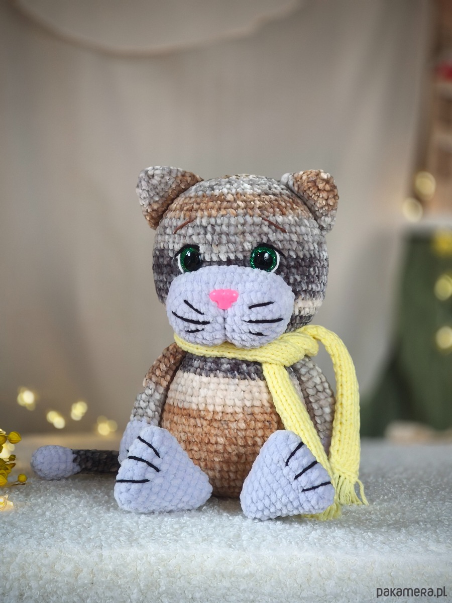 Wielobarwny miękki kotek pluszowy w szaliku to idealny prezent na wiele różnych świąt dla dzieci lub dorosłych!