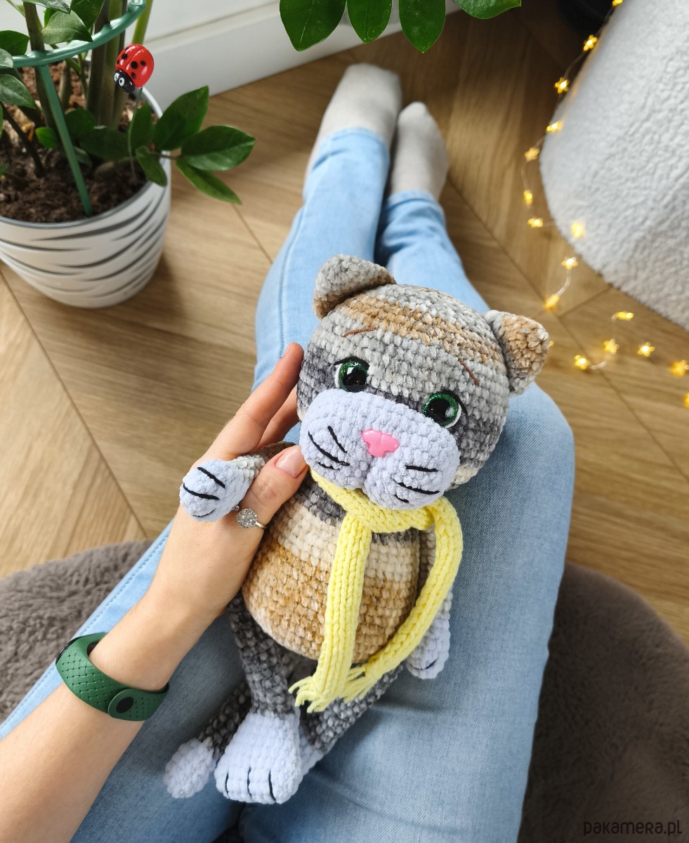 Każda maskotka z melanżowej włóczki jest absolutnie unikatowa (dokładnie powtórzenie nie jest możliwe ze względu na losową zmianę kolorów).