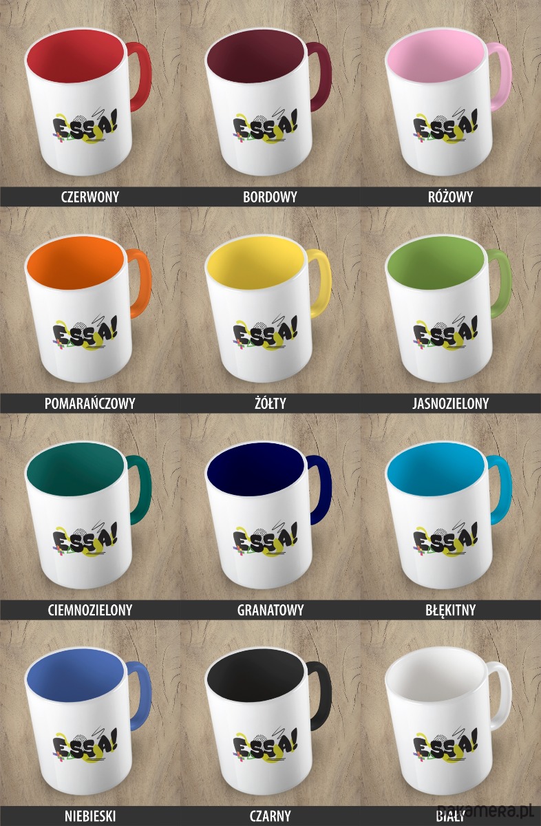 Kubek z kolorowym środkiem i uchem. Kubki wykonane są z ceramiki oraz pokryte wysokiej klasy powłoką JS Coating. Dzięki tej powłoce kubki są znacznie bielsze od tych o niższej klasie, wydruk dłużej się utrzymuje. Kubki można myć w zmywarce.
