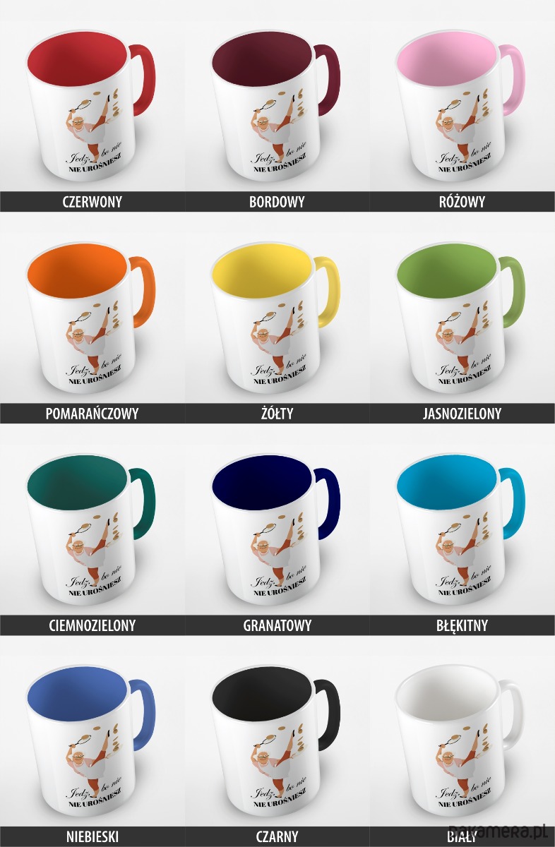 Dostępnych jest 11 kolorów oraz kubek biały: