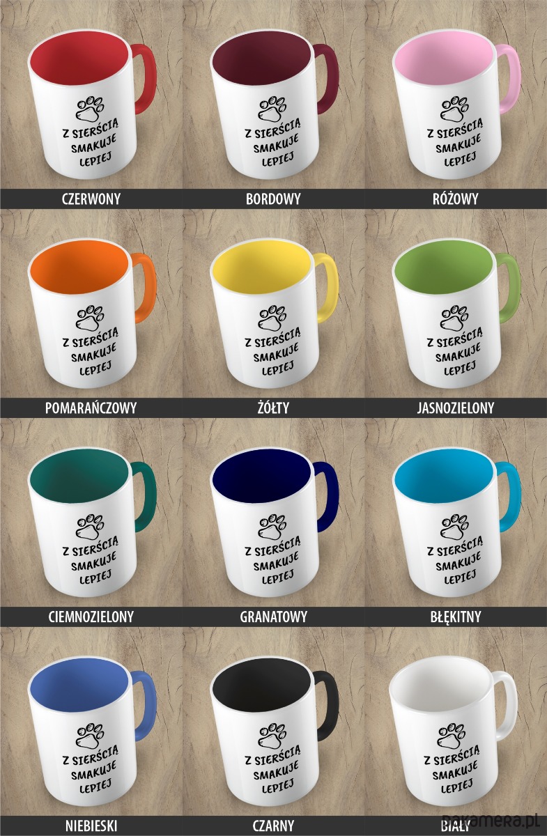 Kolorowy kubek z hasłem Z SIERŚCIĄ SMAKUJE LEPIEJ - mix kolorów