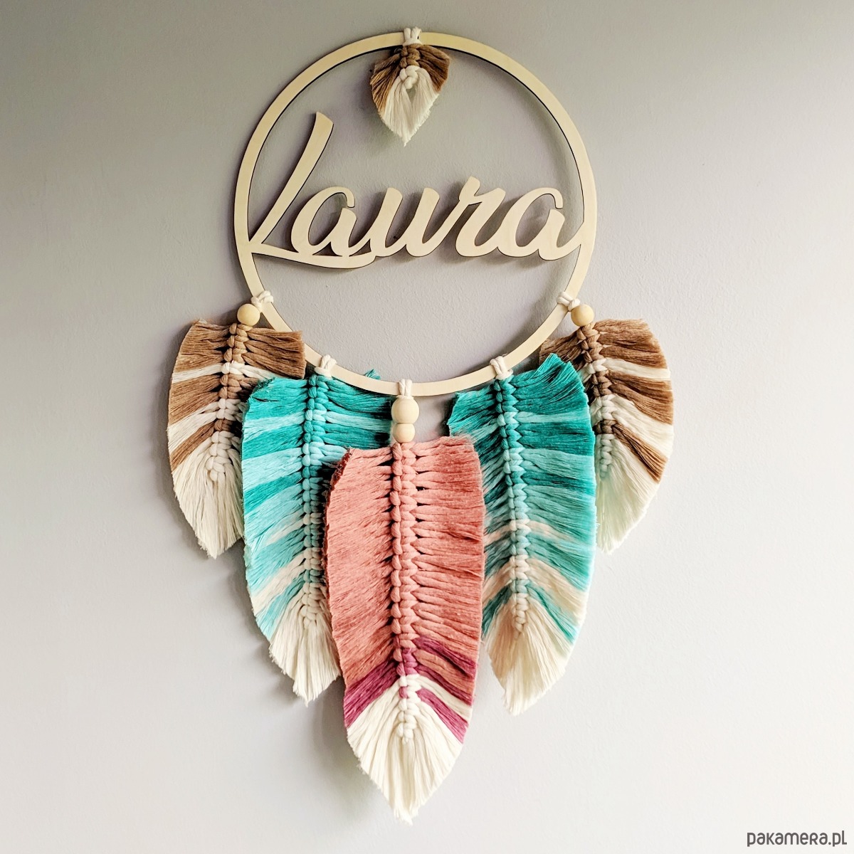 Kolorowy łapacz snów, kolorowe dekoracje dziecięce z imieniem 55cm