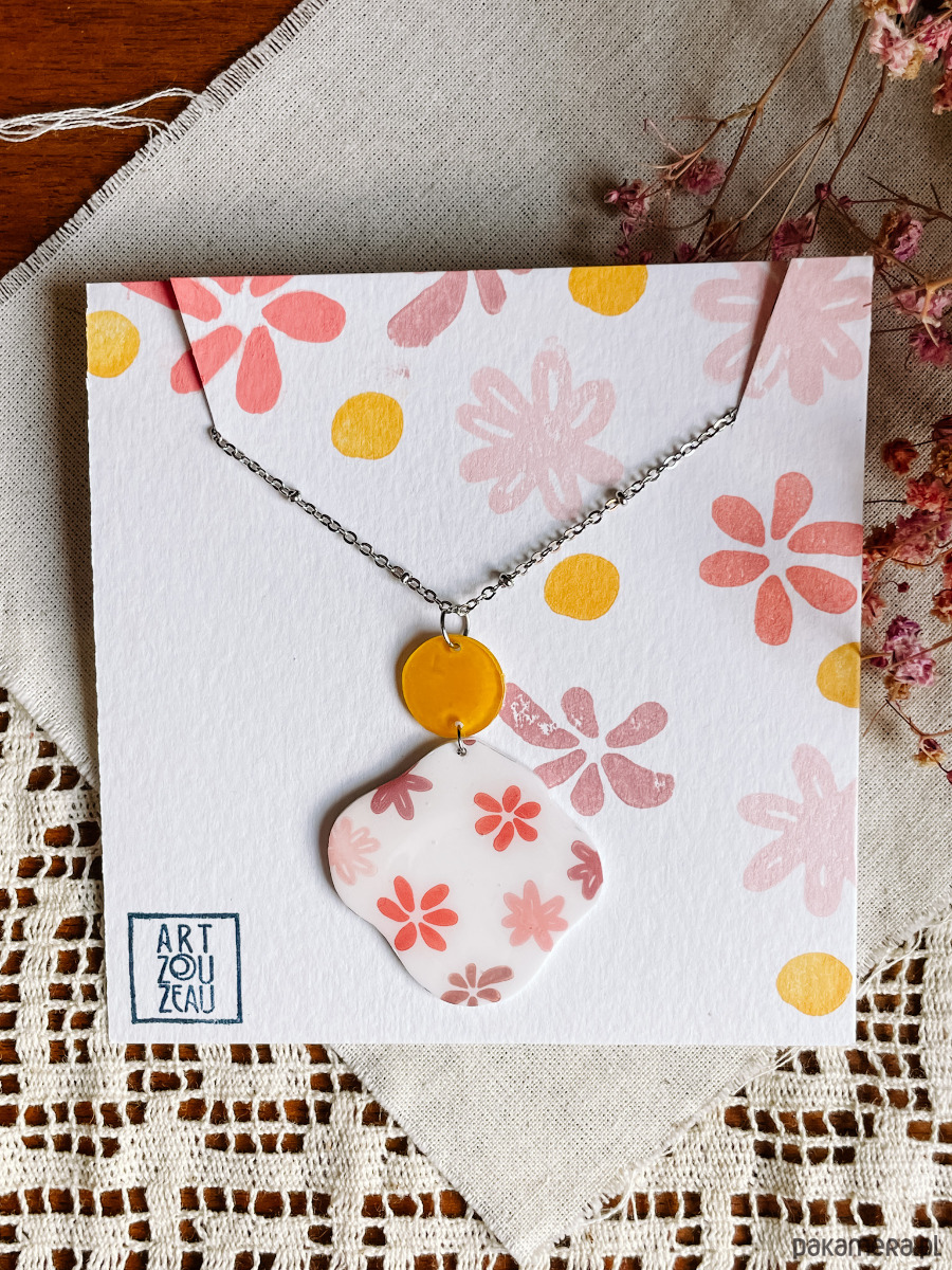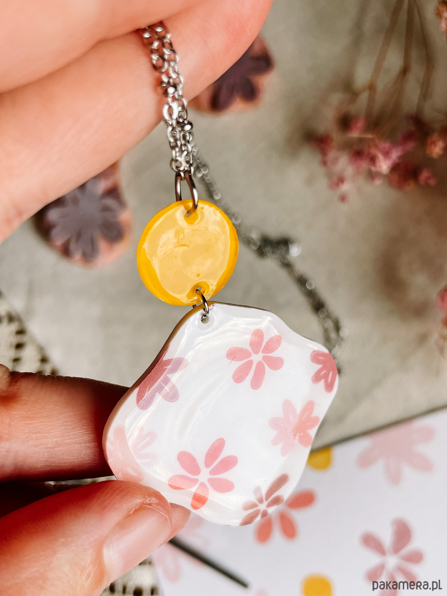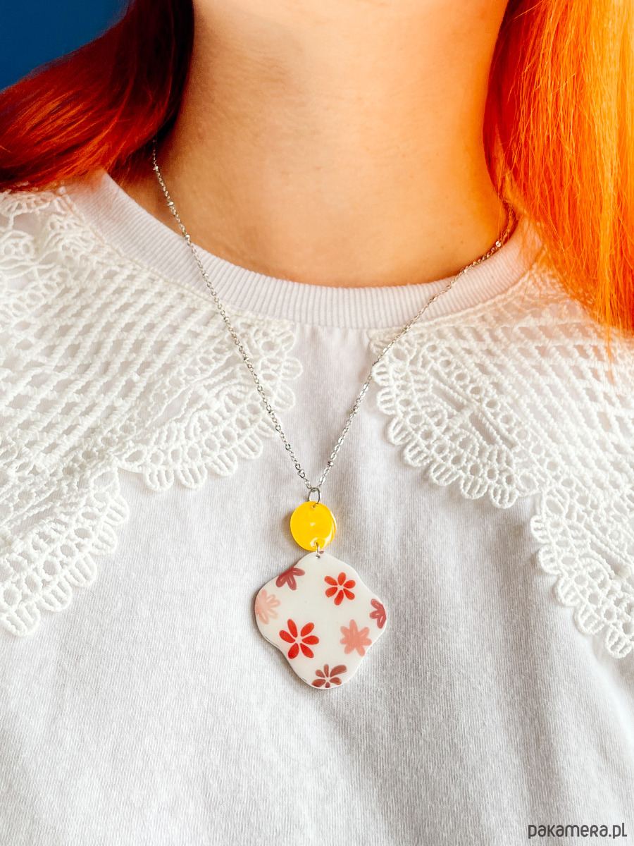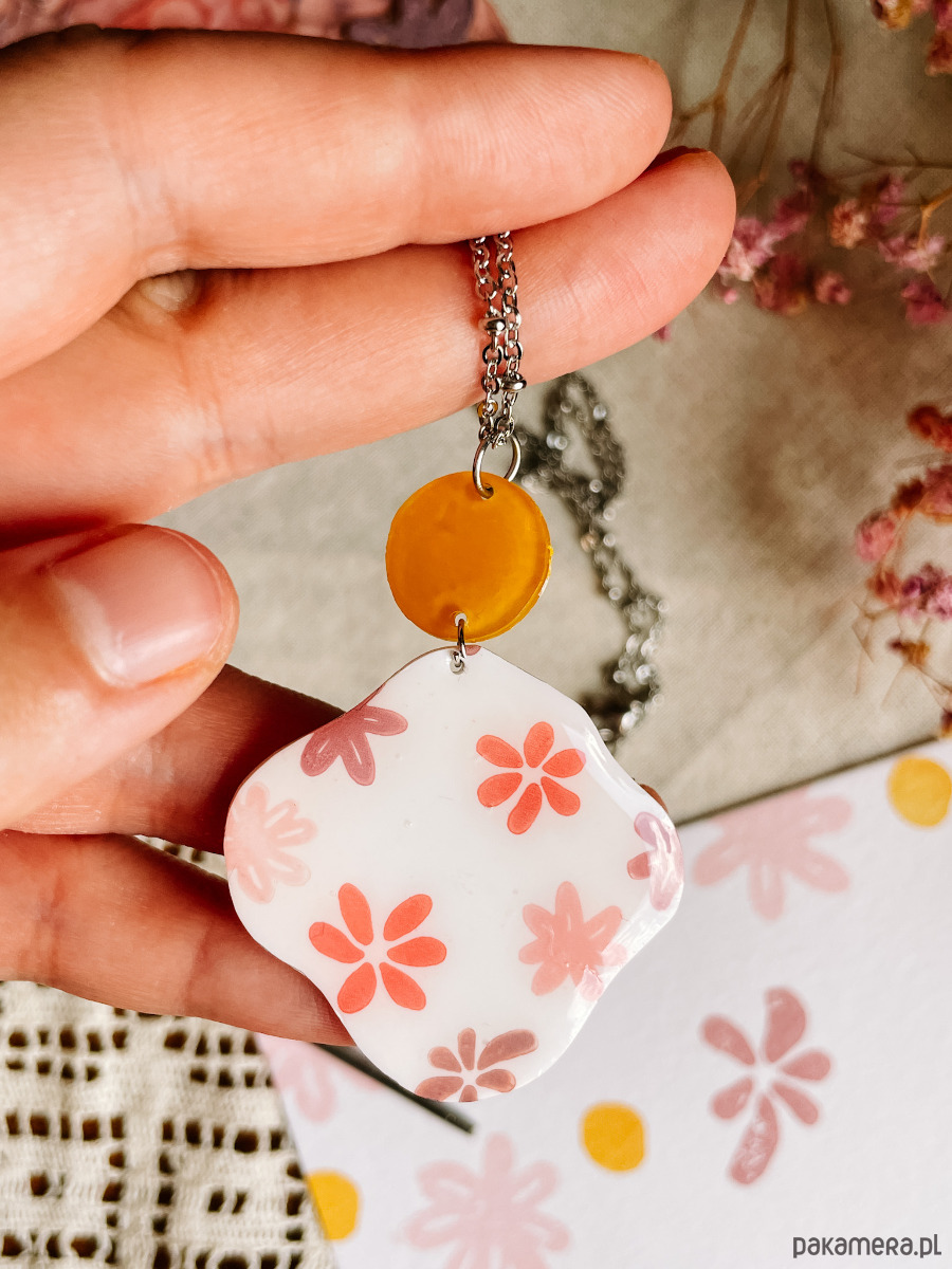 Naszyjnik jest bardzo lekki i wygodny w noszeniu, bo powstał z tworzywa typu shrink plastic. Każdy egzemplarz wykonuję ręcznie, dlatego nie ma dwóch identycznych - drobne różnice w kształcie czy kolorach są naturalnym efektem pracy manualnej i sprawiają, że każdy naszyjnik jest naprawdę wyjątkowy.