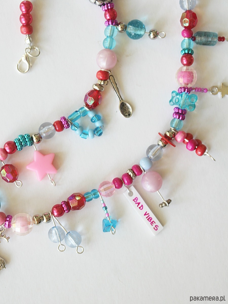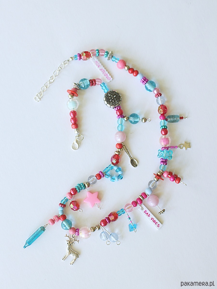 Kolorowy naszyjnik z zawieszkami BAD VIBES różowo czerwono niebieski
