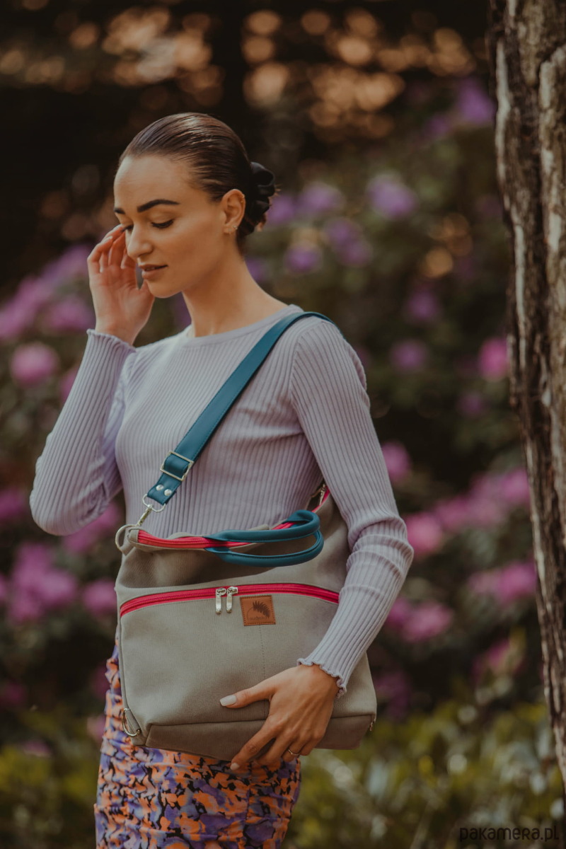 Wodoodporna torba, która staje się plecakiem, lub plecak, który staje się torebką:-). Wystarczy tylko odpowiednio przepiąć paski (długość regulowana), które raz są szelkami plecaka, innym razem paskiem torebki. Wygoda plecaka, elegancja torebki, miejski look. Mieści format A4 i świetnie sprawdzi się w pracy, szkole i na uczelni. Zabierzesz ją na rower i spacer z dzieckiem. Zmieści tablet, dokumenty, książki lub notatki, a w dwóch zewnętrznych kieszonkach wszelkie mniej cenne drobiazgi. Doskonała alternatywa dla aktywnych kobiet, którym ortalionowe plecaki są nie po drodze;-)