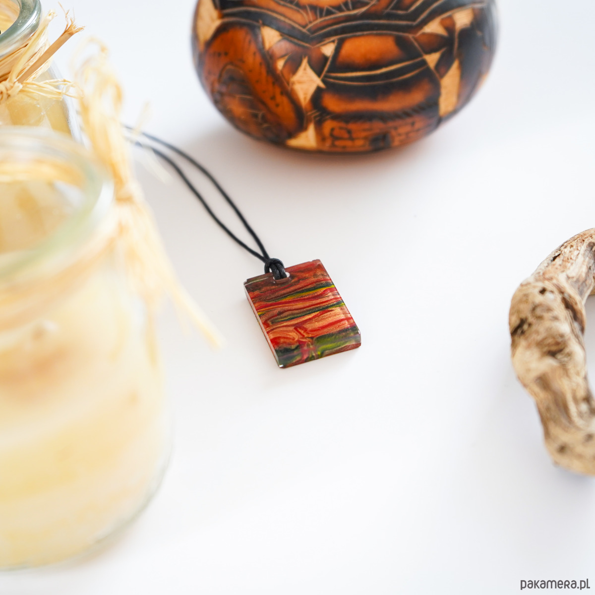 Kolorowy, prostokątny, wisiorek abstrakcyjny, z żywicy epoksydowej