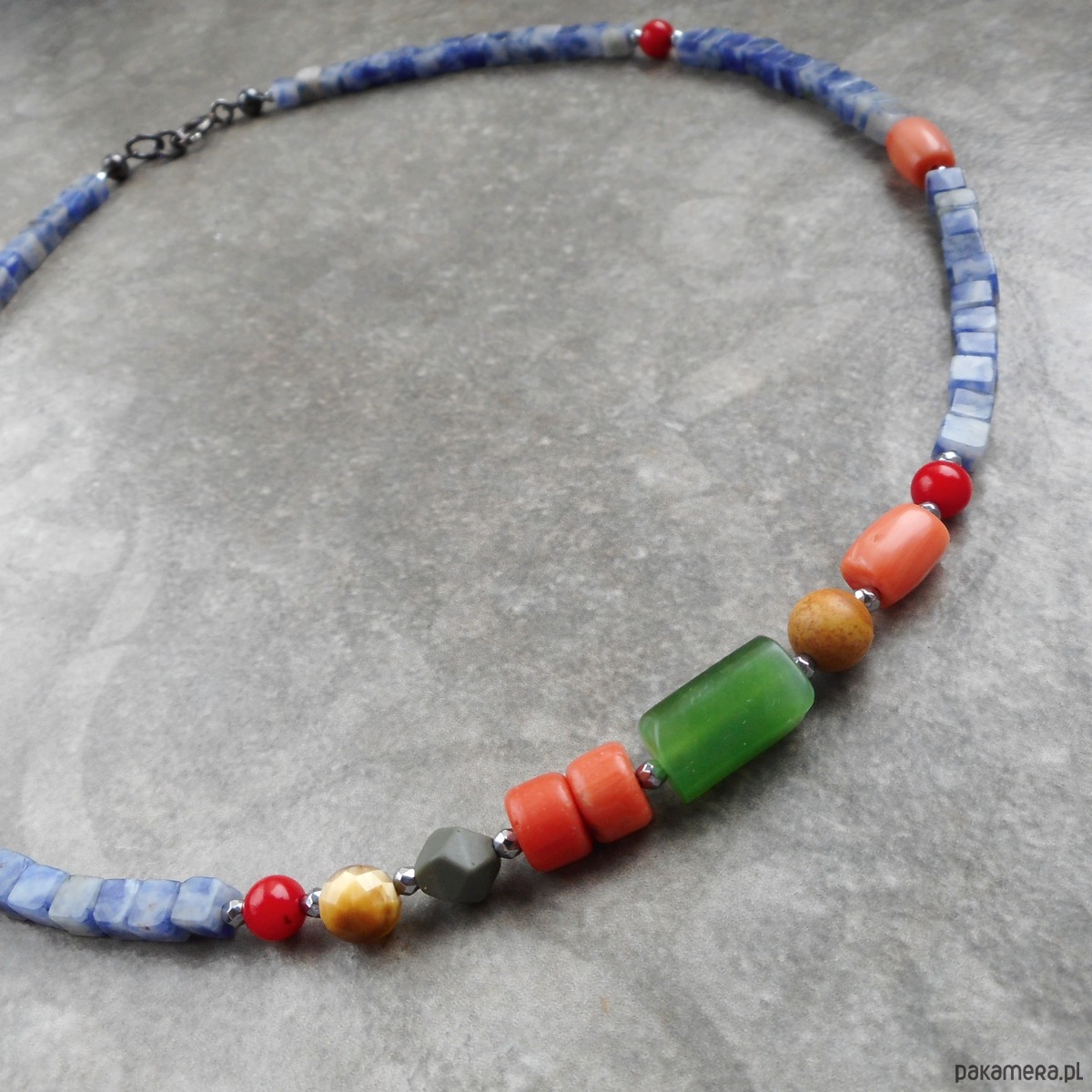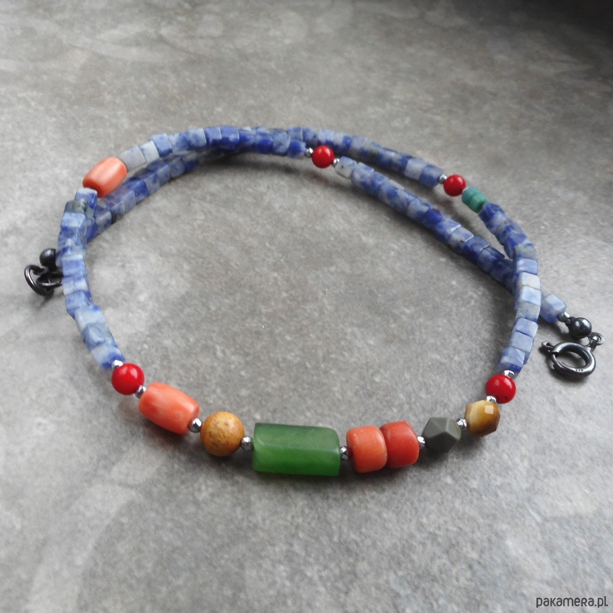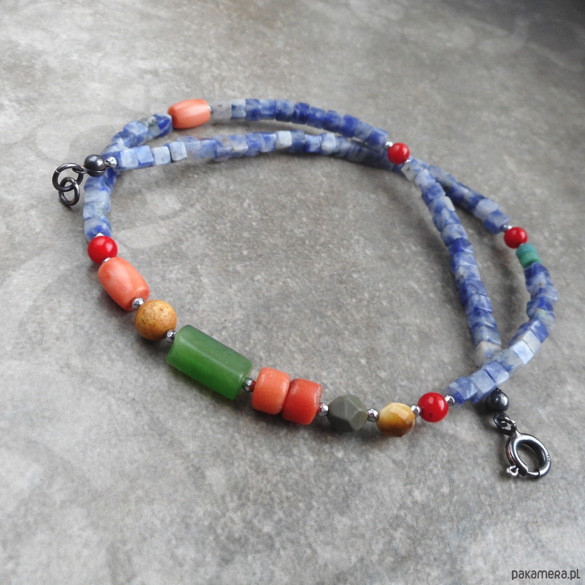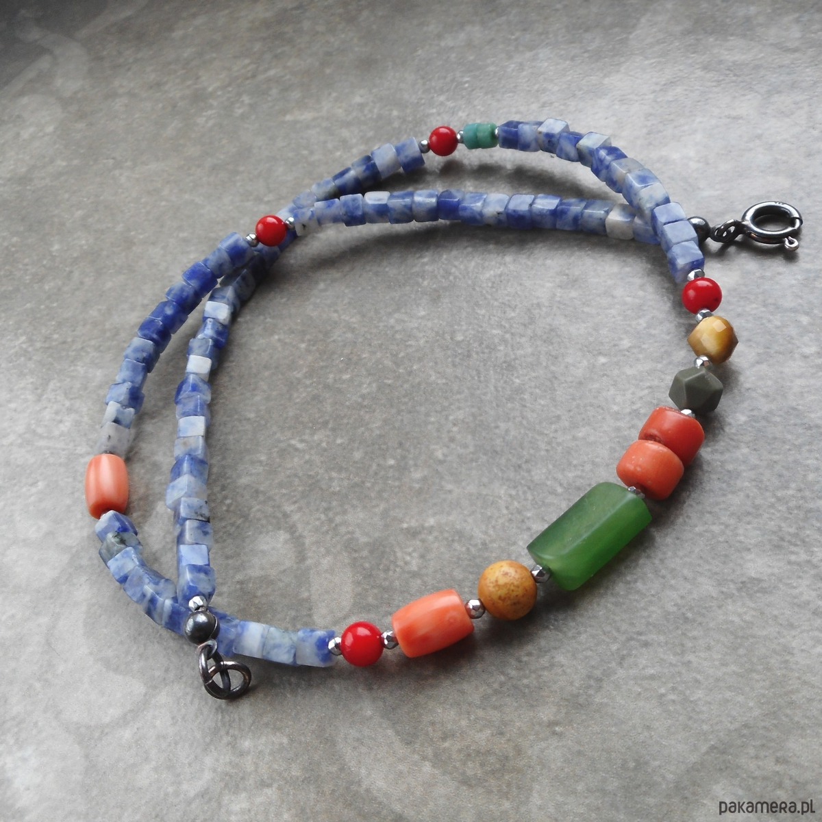Naszyjnik z kamieni naturalnych i szlachetnego srebra; kolorowy, ożywi każdą stylizację.