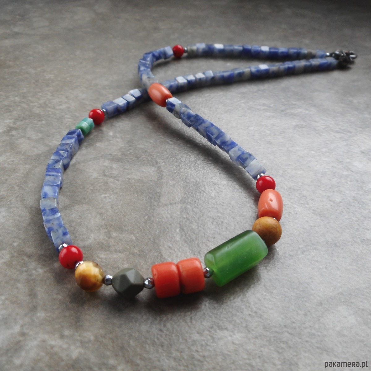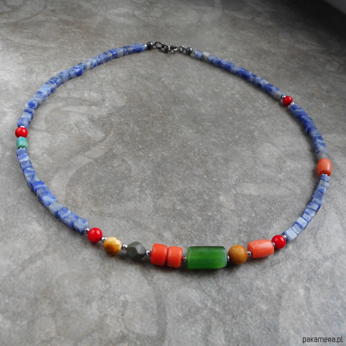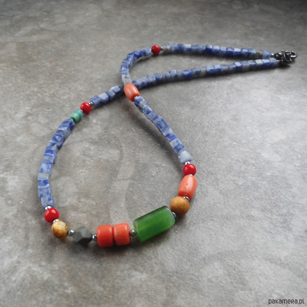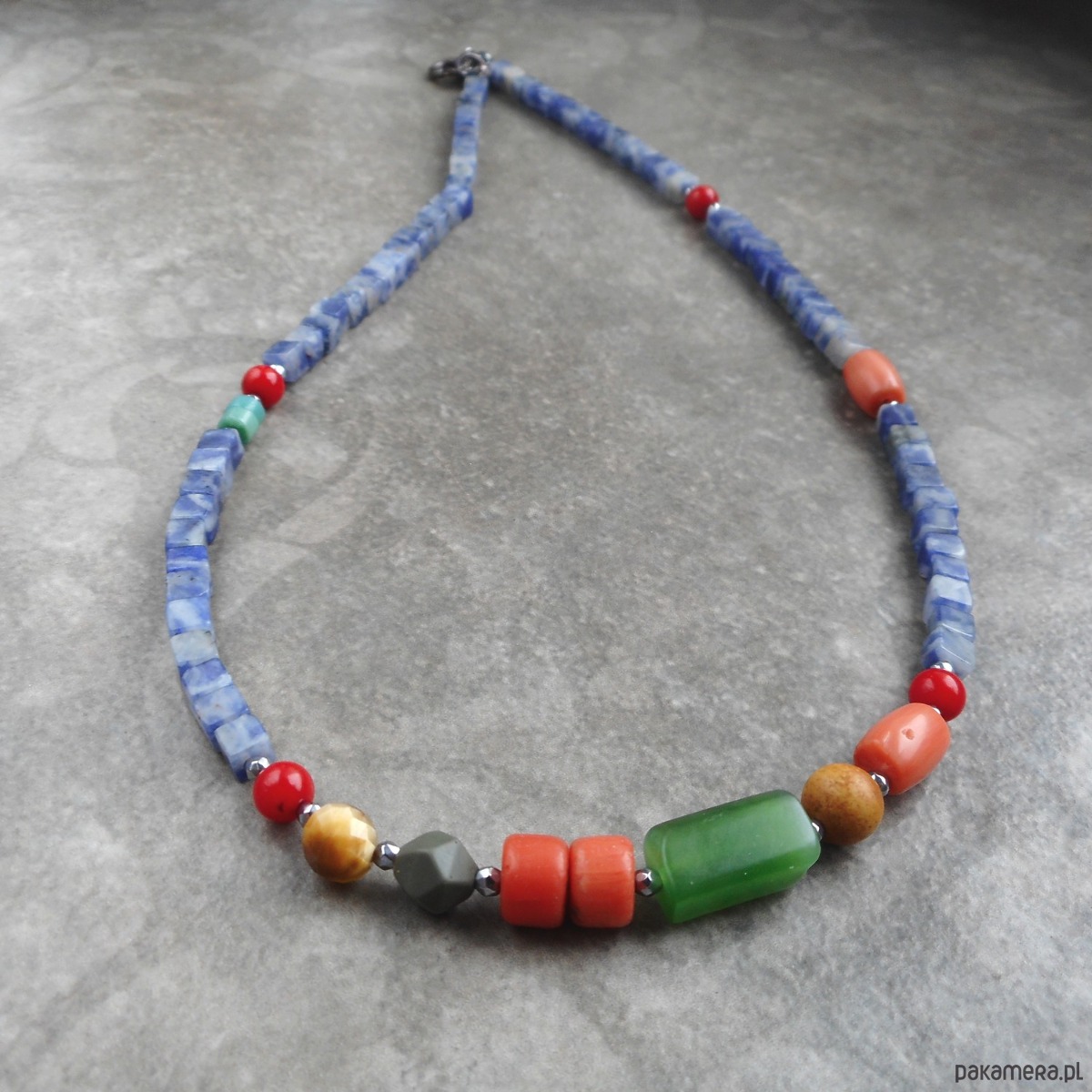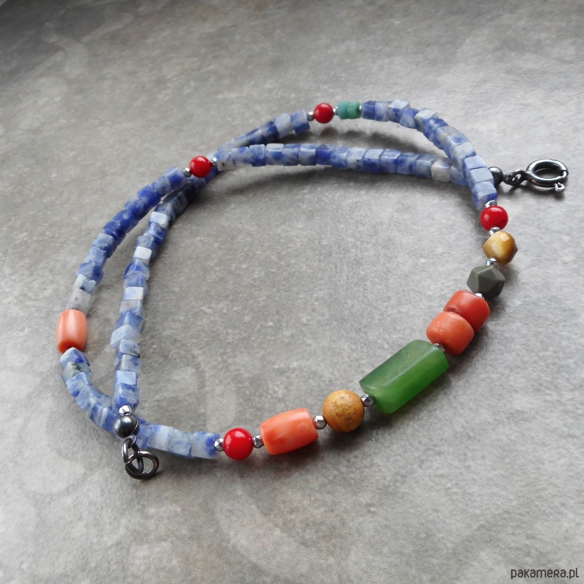 Naszyjnik z kamieni naturalnych i szlachetnego srebra; kolorowy, ożywi każdą stylizację.