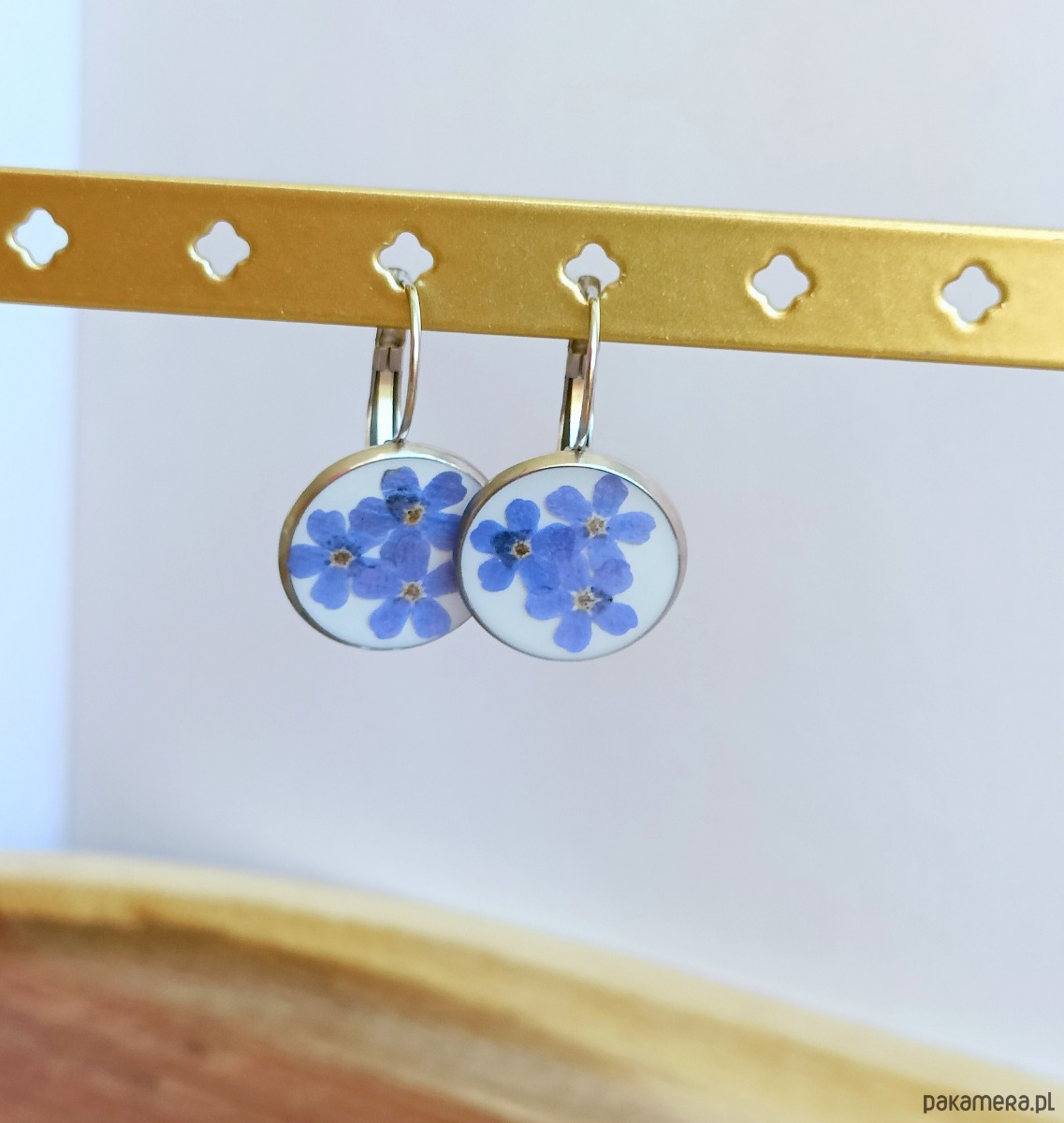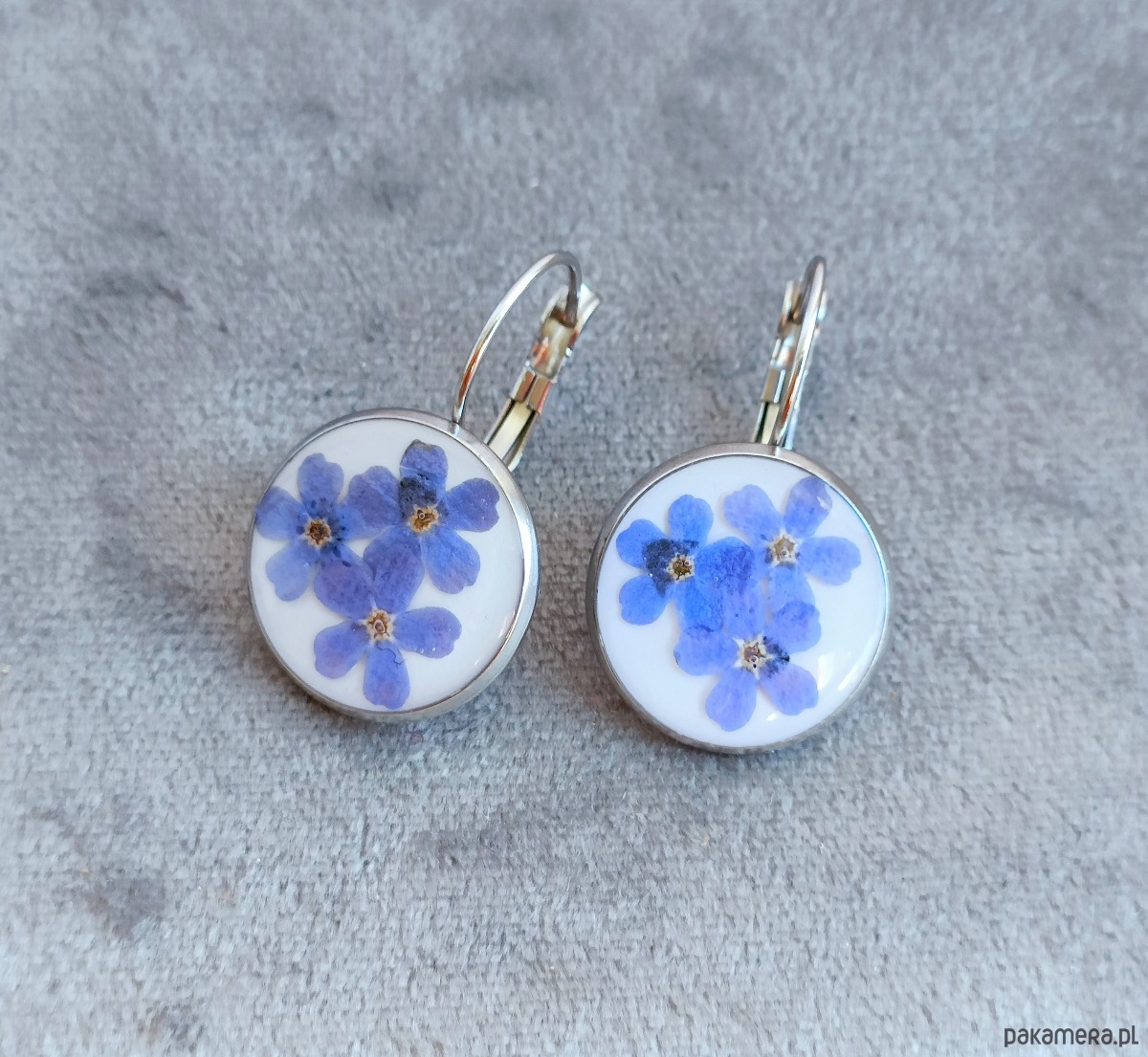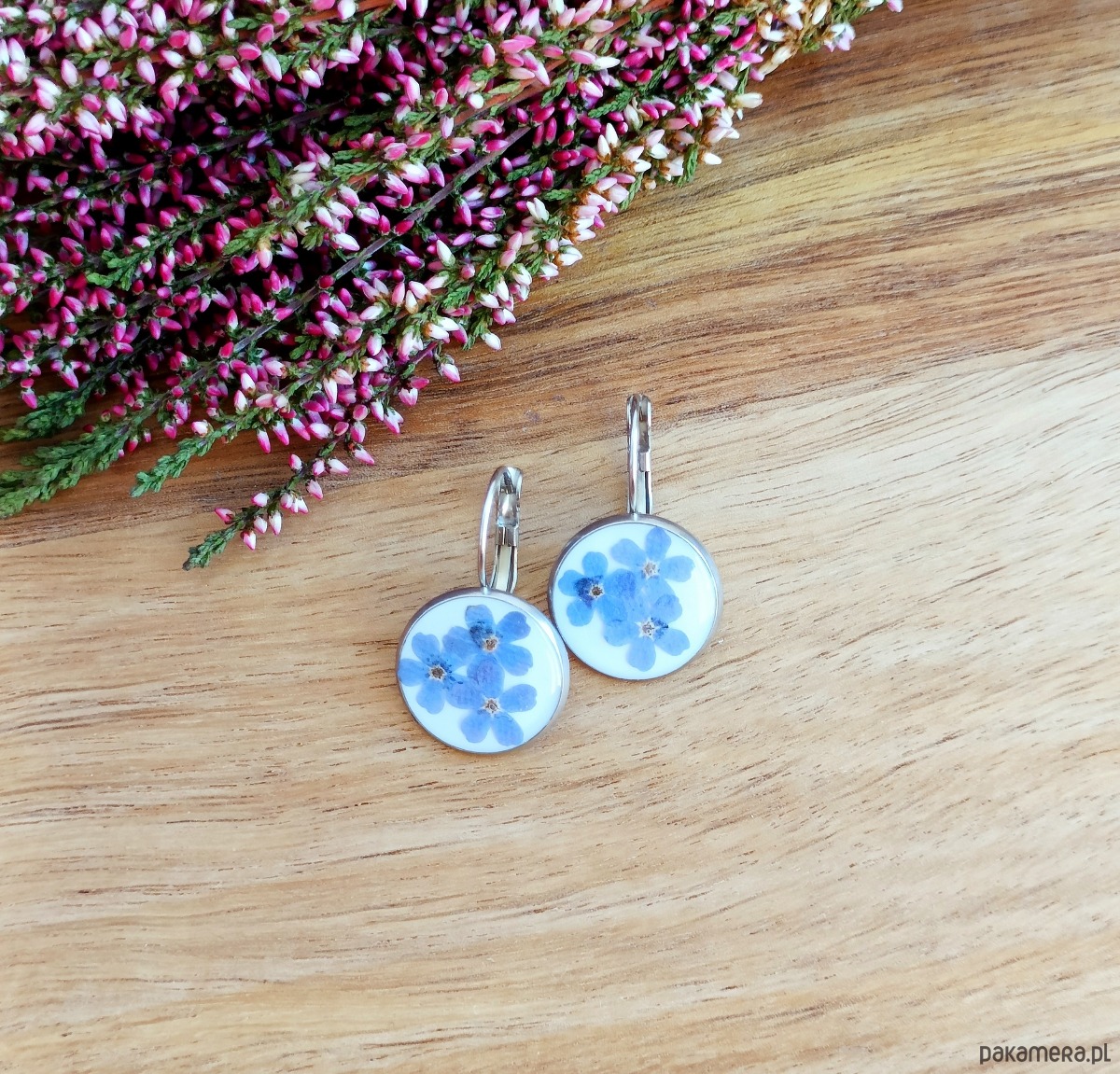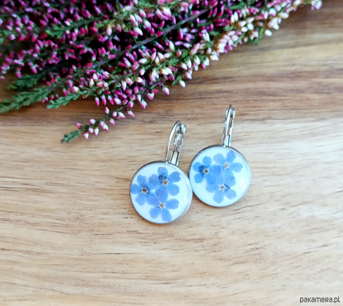 KOLORY BIELI - NIEZAPOMINAJKI - kolczyki z kwiatami w żywicy
