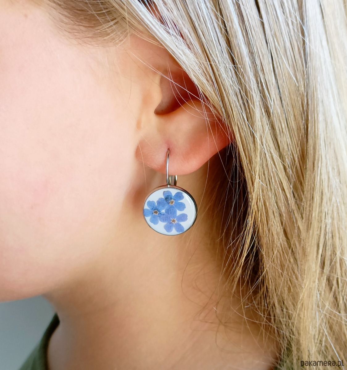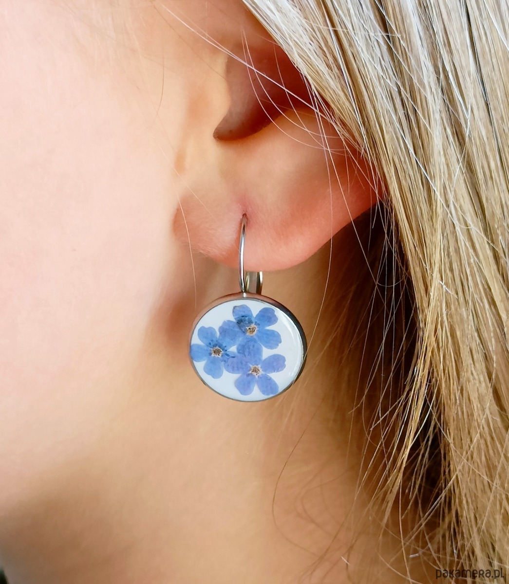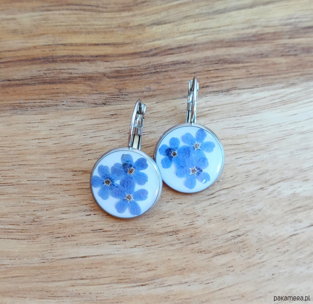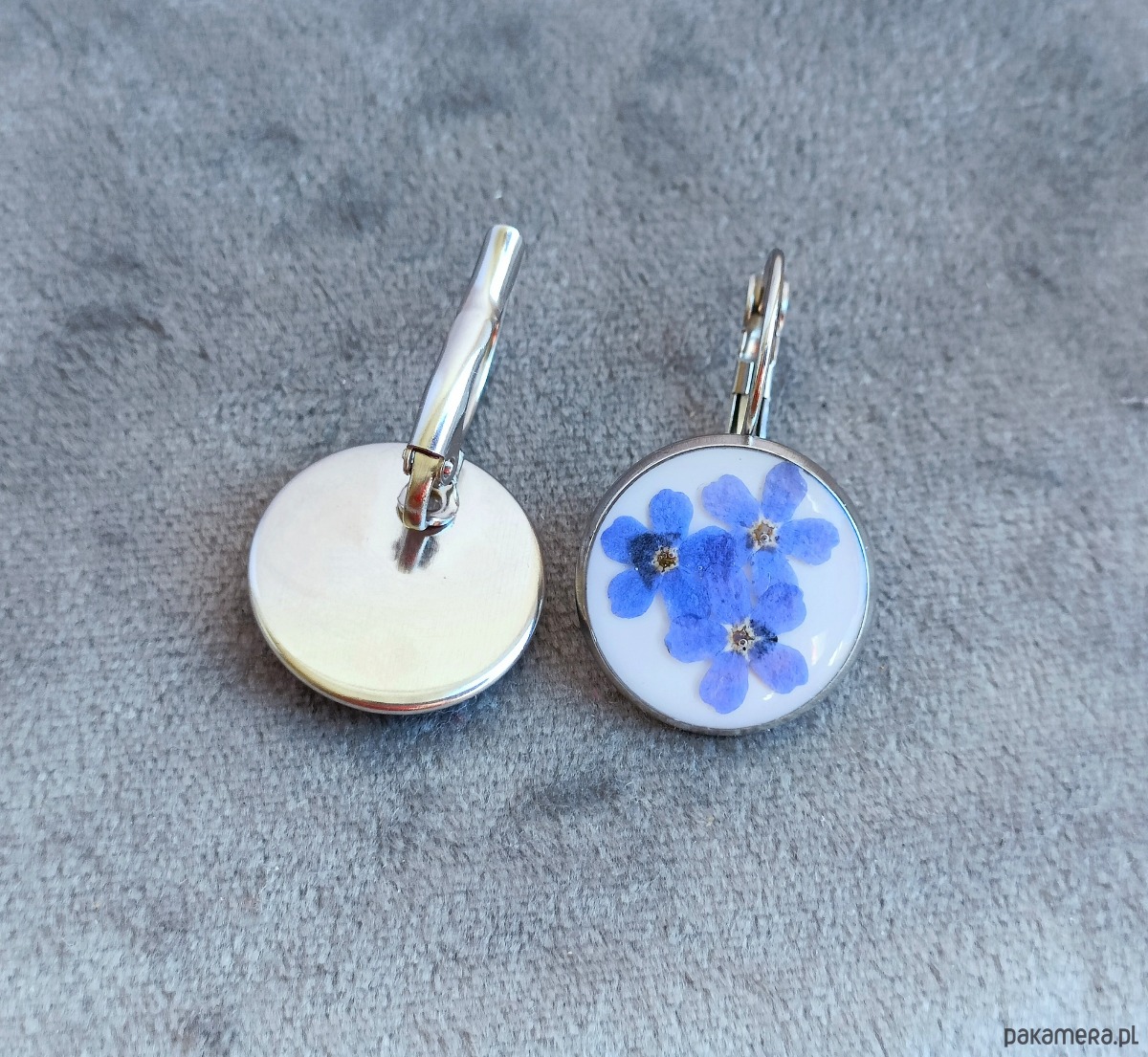 KOLORY BIELI - NIEZAPOMINAJKI - kolczyki z kwiatami w żywicy