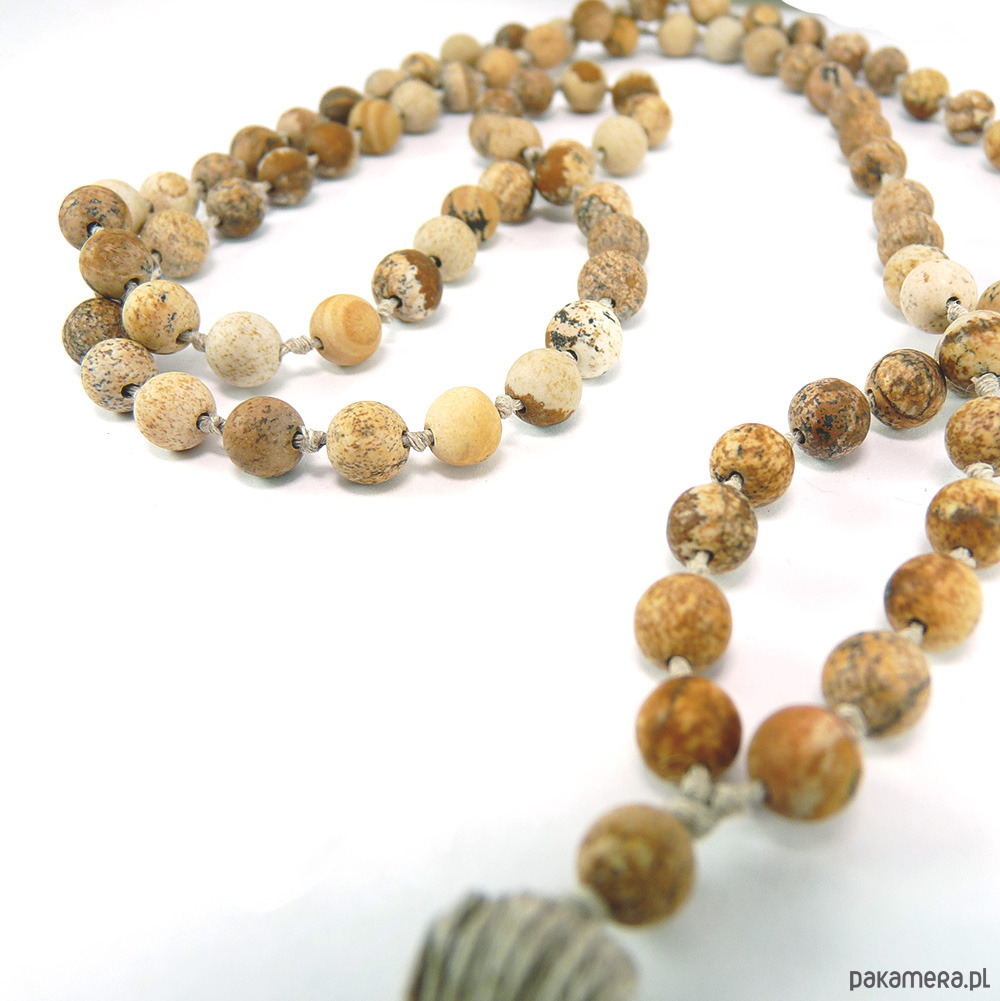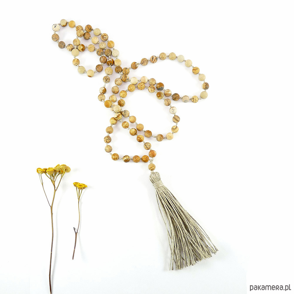 Naturalny, długi naszyjnik z lnianym frędzlem
