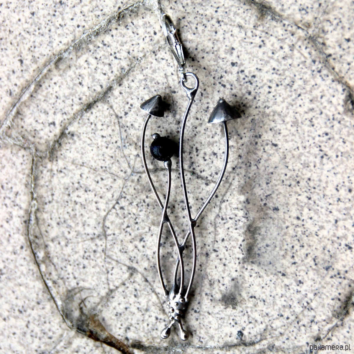 Ręcznie wykonany kolzyk pojedynczy w stylu cottagecore boho hippie z motywem magicznych grzybów leśnych, wykonany z miedzi, cyny i i kamienia awenturynowego. Zabezpieczony środkiem przeciwutleniającym, szlifowany, polerowany. Lekka i solidna, wyjątkowa biżuteria w stylu leśnej czarownicy. Wszystkie elementy są wykonane ręcznie, co zapewnia indywidualność każdego produktu wytworzonego w warsztacie Yadovito. Stop cyny i miedzi polerowany roztworem wykończeniowym, aby nadać biżuterii szlachetny wygląd i jednocześnie zapobiec utlenianiu się metalu. Rozmiar około 7*3 cm. Kolor srebrny.