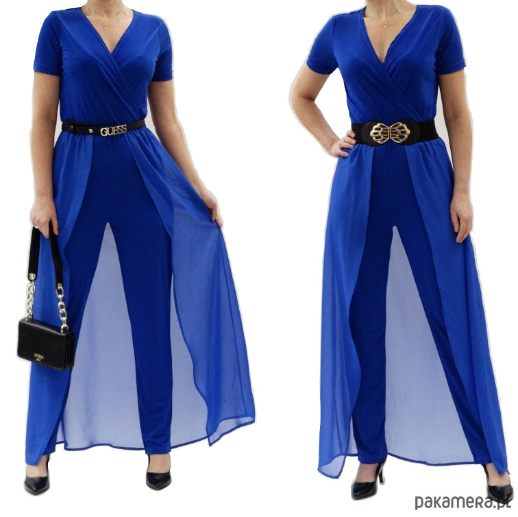 ELEGANCKI KOMBINEZON chabrowy Z TRENEM