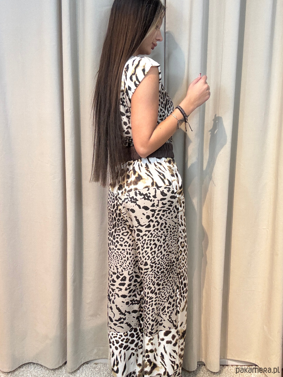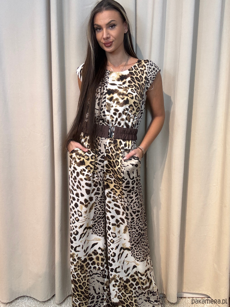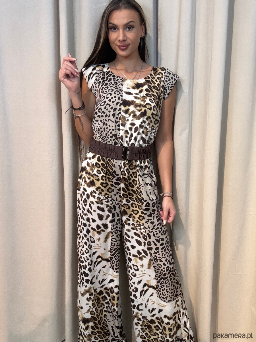 Kombinezon damski z motywem zwierzęcym i paskiem w zestawie.