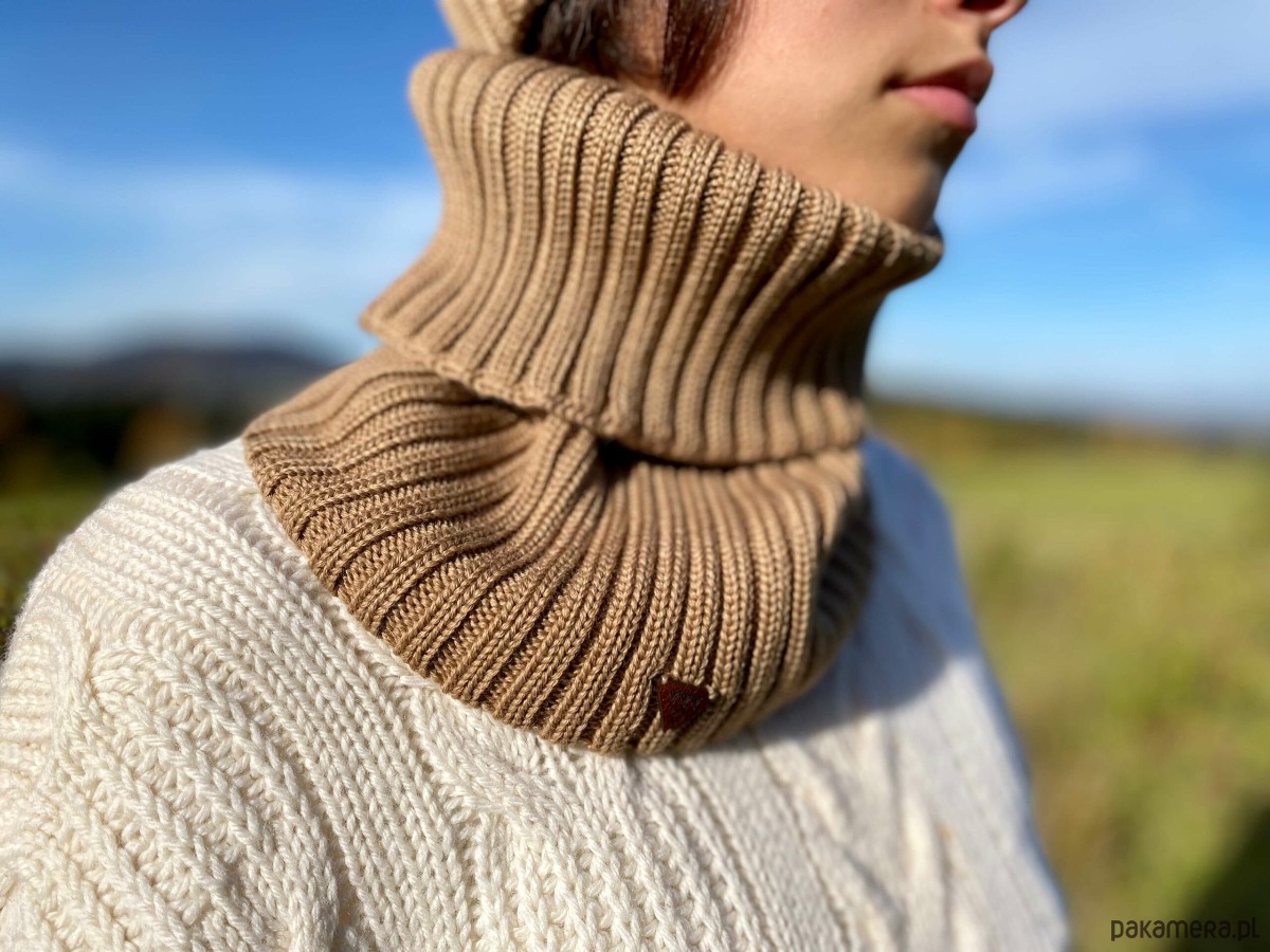 Komin w prążki Merino – z wełny merynosowej extrafine w kolorze beż kamel