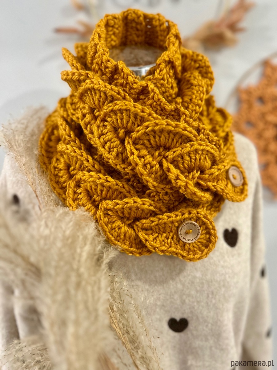 Ten miękki, otulający komin w kolorze musztardowym czeka od ręki – idealny, by sprawić komuś (albo sobie!) prawdziwą przyjemność.