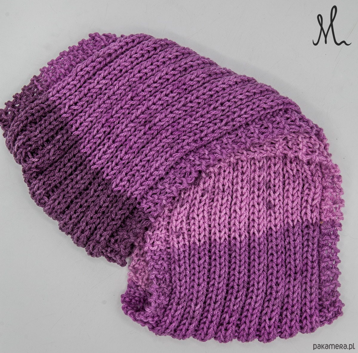 Na moim profilu możesz kupić do kompletu czapkę Smerfetkę Fiołkowy Ryż wykonaną z tej samej włóczki.