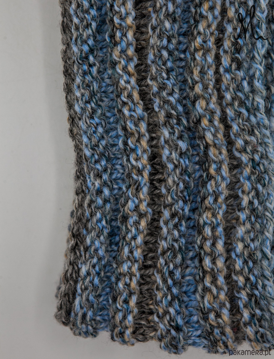 Komin wykonany na drutach bezszwowo. Włóczka jest miękka i miła w dotyku, w wyrobie sprężysta i cieplutka. Nie "gryzie":)