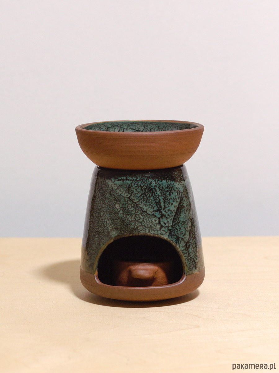 Kominek / Podgrzewacz jest toczony na optymalną wysokość dla użytku z olejkami lub woskami zapachowymi (nawet sojowymi o niższej temp. topnienia).