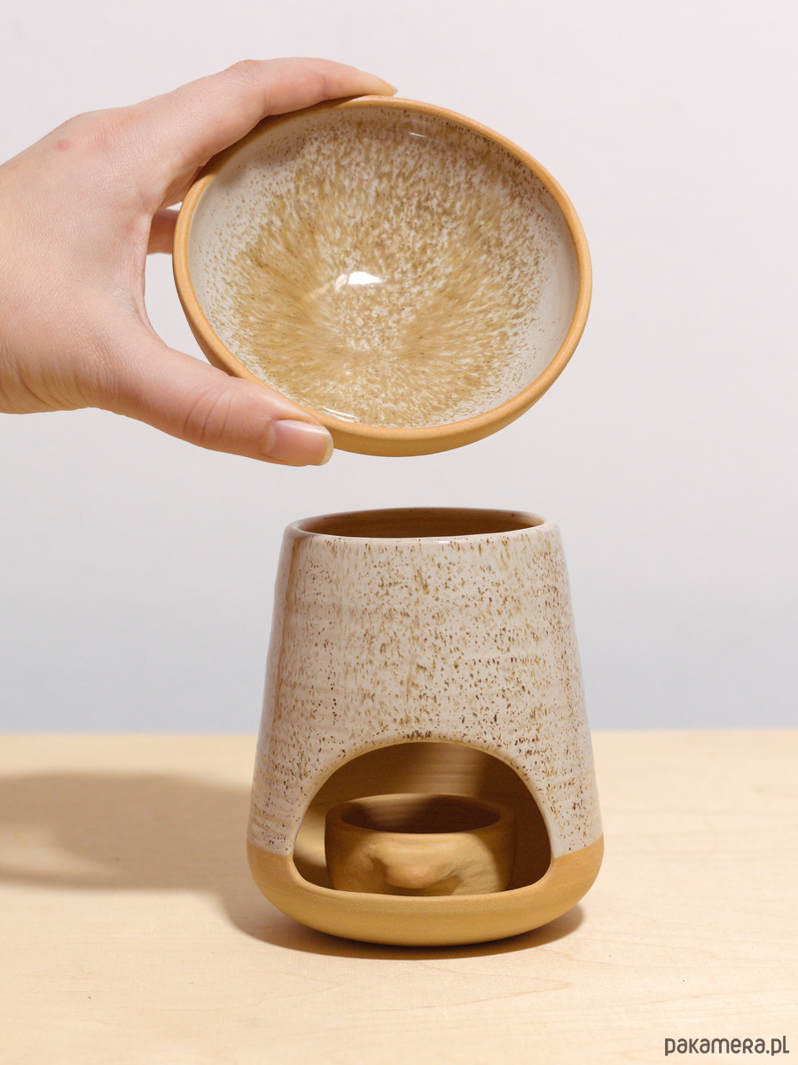 Kominek / Podgrzewacz jest toczony na optymalną wysokość dla użytku z olejkami lub woskami zapachowymi (nawet sojowymi o niższej temp. topnienia).