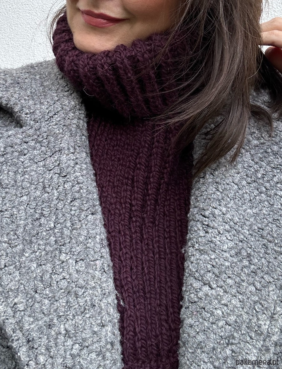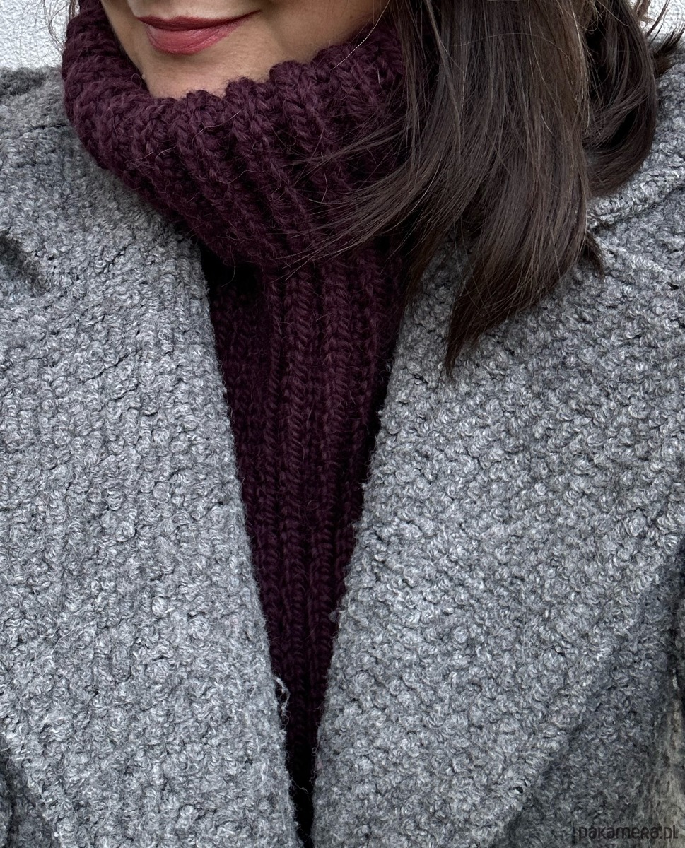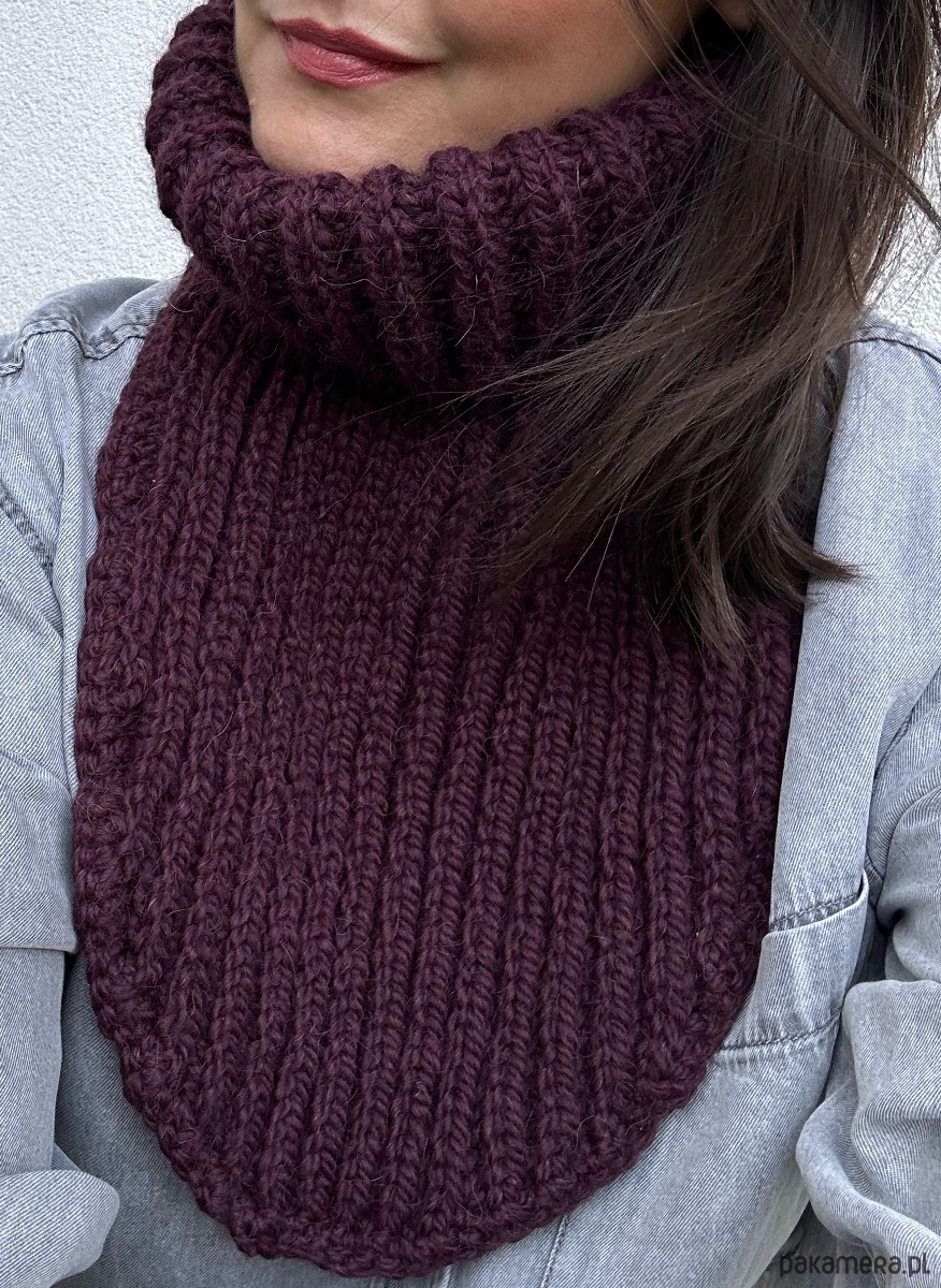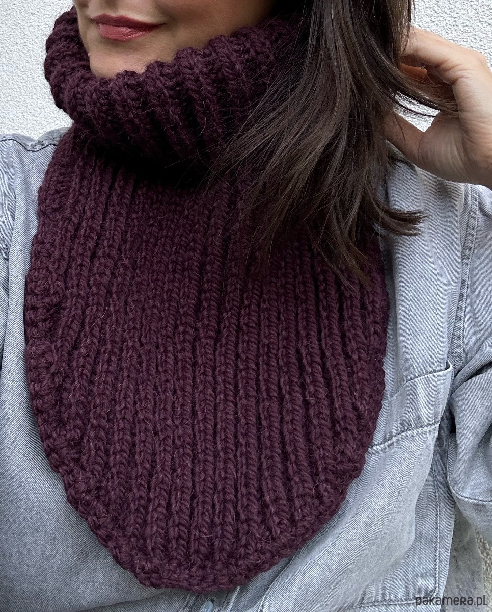 Komin/ komin/ otulacz wkładany przez głowę , który doskonale zastępuje szal. Delikatnie otula szyję, a jego dolna część jest długa, przez co możesz go nosić do płaszczy z wycięciem i zapięciem V.