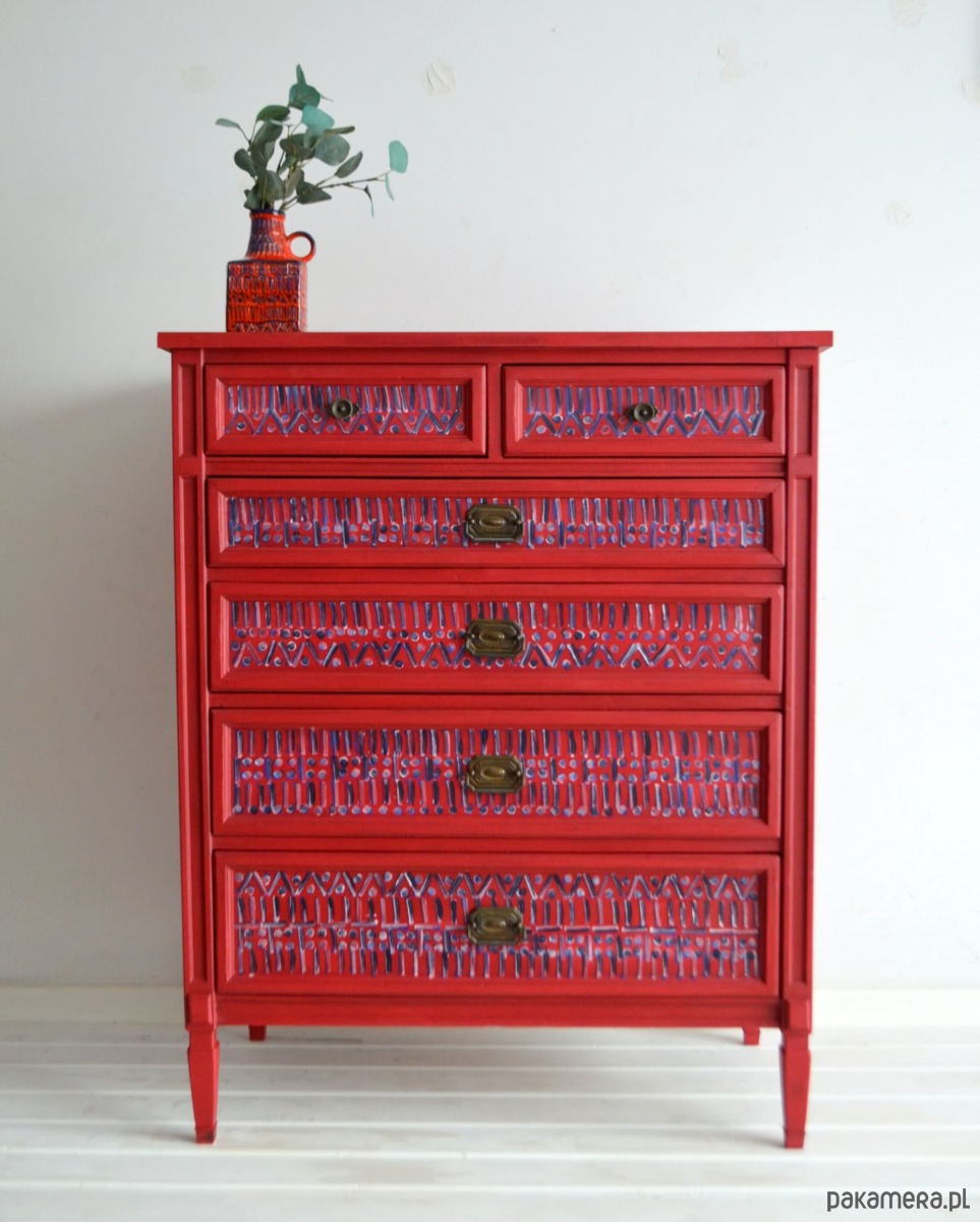 Do stylizacji wykorzystałam farby i wosk Chalk Paint Annie Sloan, całkowicie Eco Friendly, bezpieczne dla dzieci. Komoda oraz jej wnętrze zabezpieczona kilkoma warstwami bezbarwnego wosku.