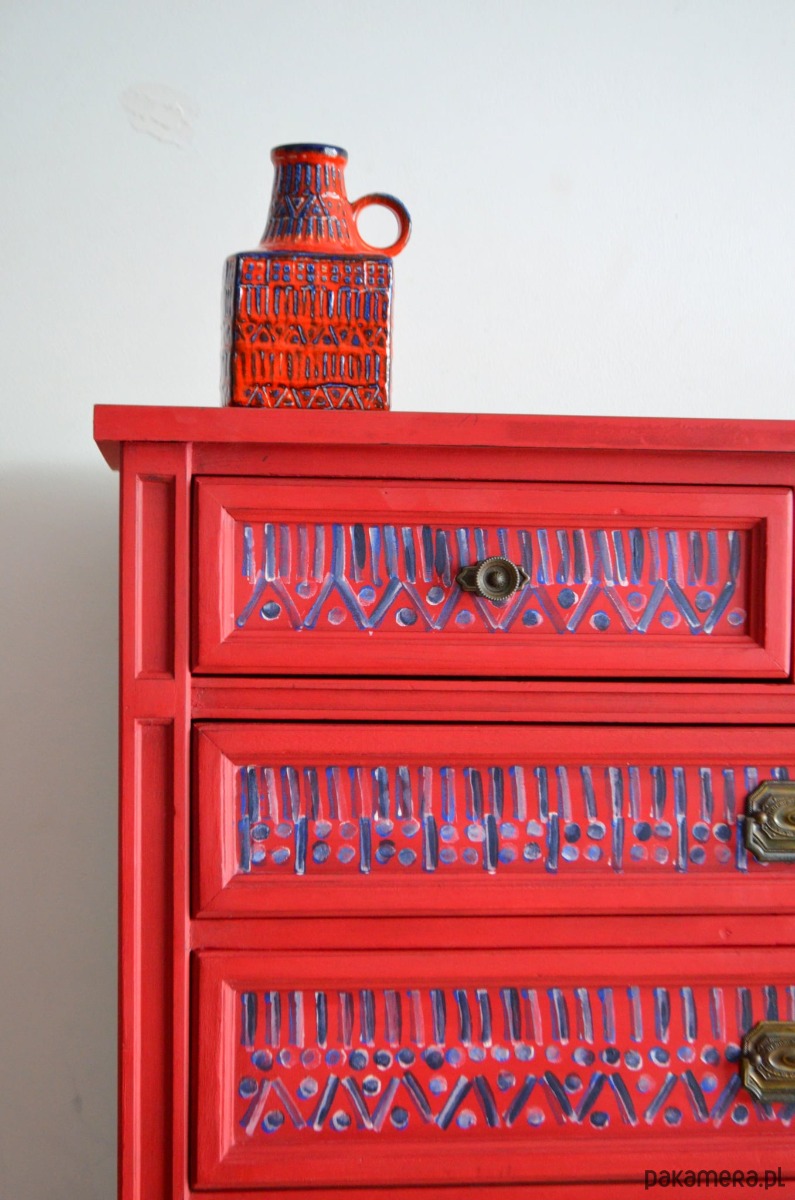 Komoda stylizowana w stylu vintage. Przetarcia i ubytki farby to zabieg celowy.