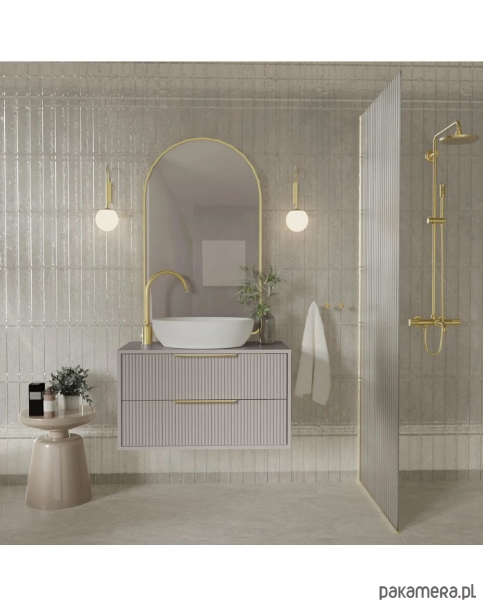 Szafka pod umywalkę to wyjątkowy mebel, który z pewnością doda elegancji łazience. Jej delikatny, kaszmirowy kolor tworzy atmosferę przytulności i harmonii, idealnie współgrając z różnorodnymi aranżacjami. Intrygujące detale, takie jak ryflowany front czy uchwyty w kolorze szczotkowanego złota, bez wątpienia nadadzą charakteru całemu pomieszczeniu. Szafka posiada dwie pojemne szuflady z cichym domykiem, w których z powodzeniem przechowasz wszystkie najpotrzebniejsze akcesoria, dzięki czemu w Twojej łazience zapanuje ład i porządek. Podwieszana konstrukcja, wniesie do wnętrza nowoczesny design i ułatwi utrzymanie czystości.
