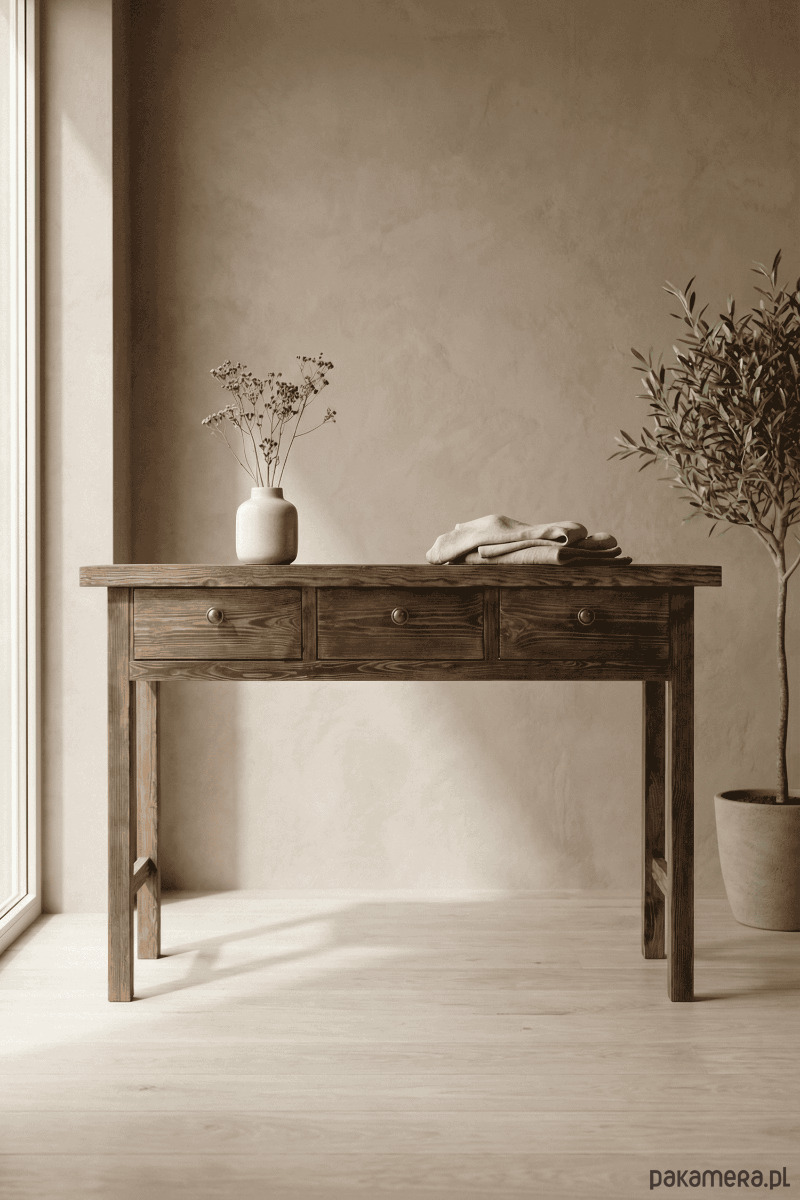 Rustykalna Konsola Drewniana z Szufladami – Funkcjonalność i Styl