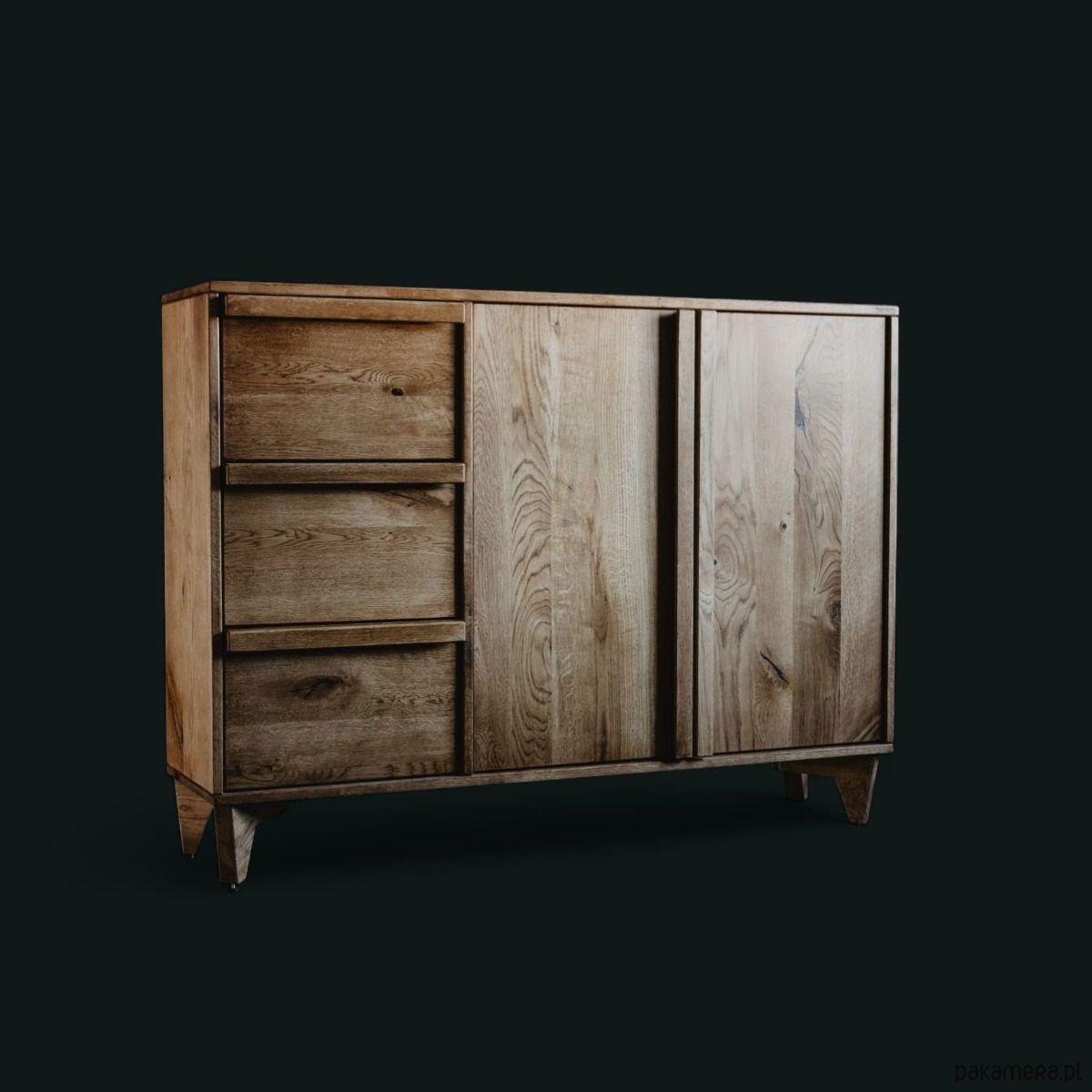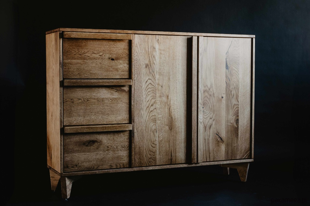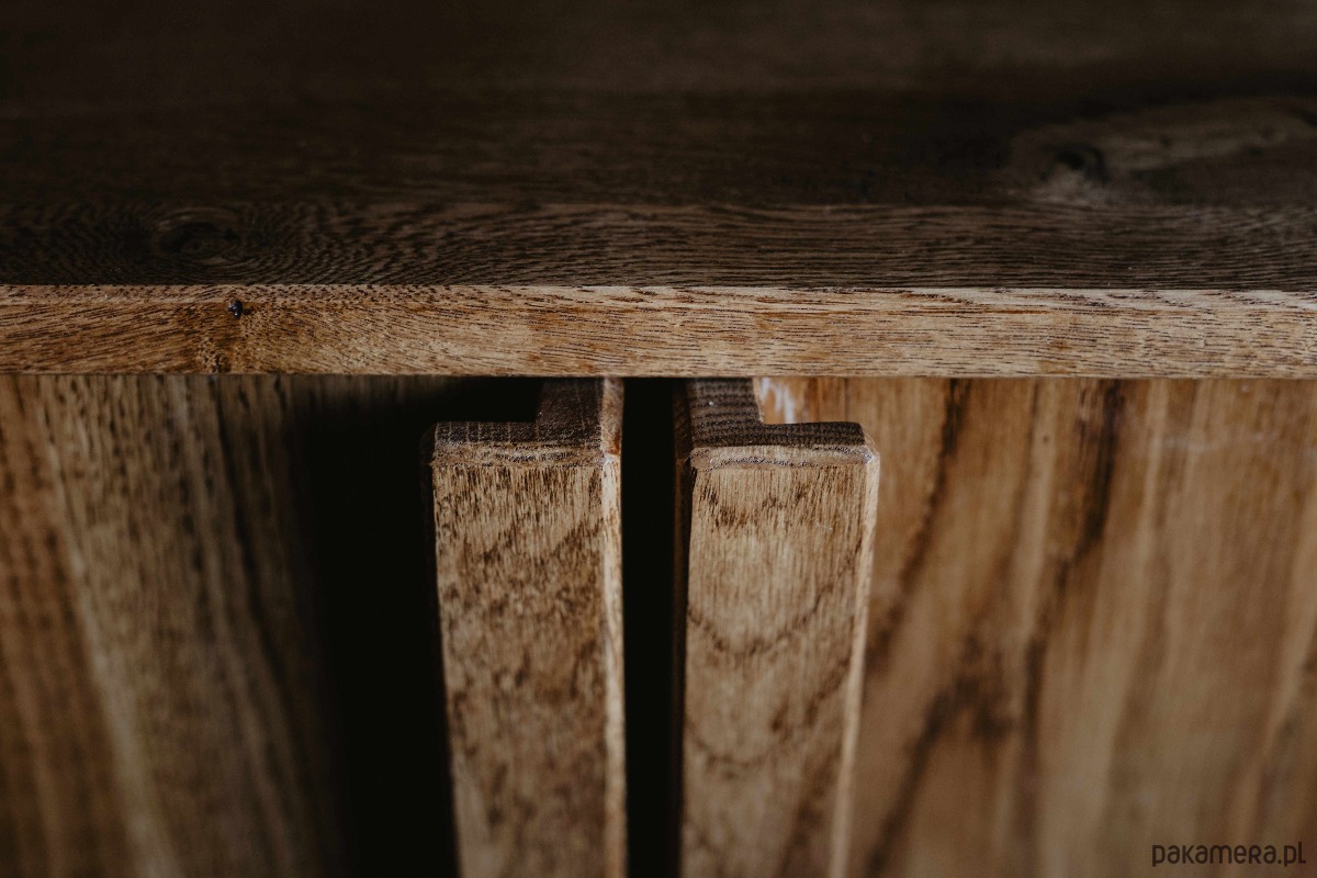 Komoda z szufladami K3 łączy lite drewno dębowe z minimalistyczną, elegancką formą. Fronty oraz korpus zostały zabezpieczone ekologicznym olejowoskiem, który podkreśla naturalne usłojenie drewna, jednocześnie ułatwiając pielęgnację i zwiększając odporność powierzchni na codzienne użytkowanie.