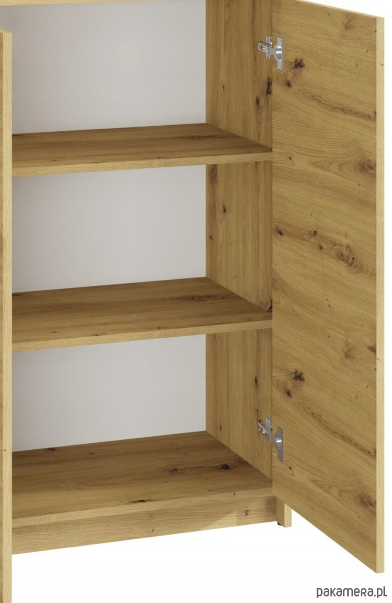 W środku znajdują się 2 półki dzielące komodę na 3 przestrzenie.