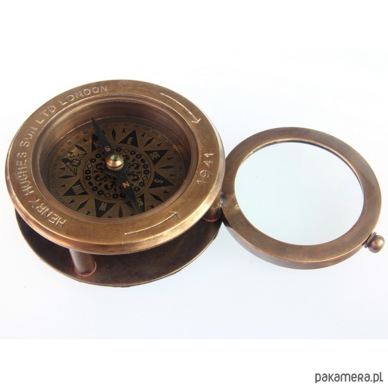 Bardzo oryginalny kompas posiadający w swoim wnętrzu szklane, "powiększające oko". Wysuwana lupa jest dodatkową funkcjonalnością, która z pewnością przyda się przy czytaniu drobnych napisów, map, instrukcji. Wykonanie w brązie zdecydowanie dodaje mu charakteru. Jest to wyjątkowy pomysł na prezent