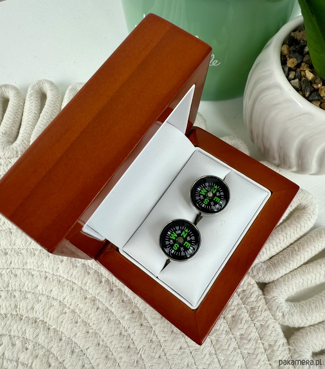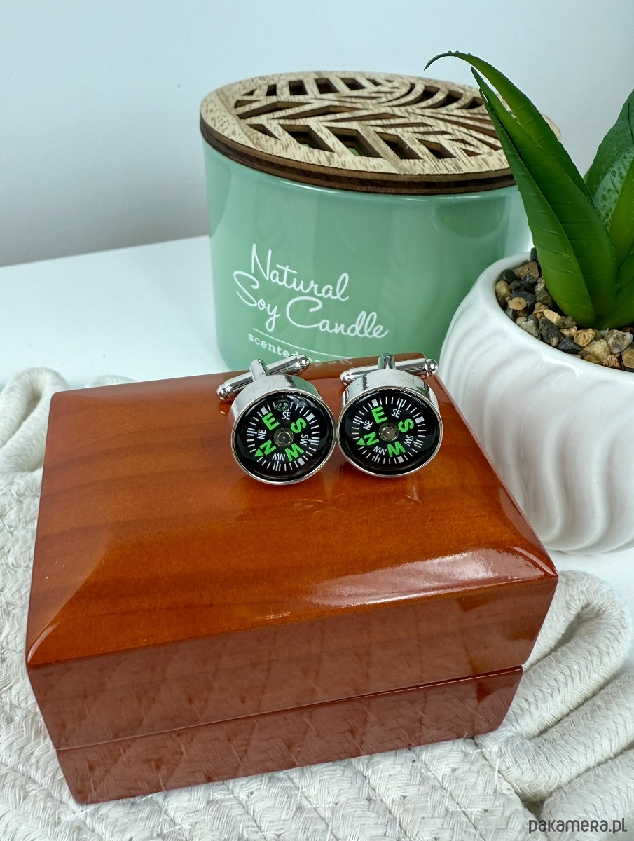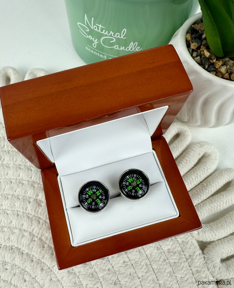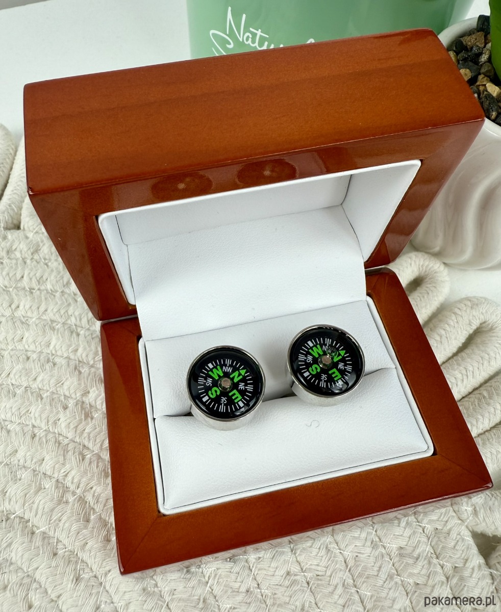 KOMPAS Spinki do mankietów ślub wesel srebrne