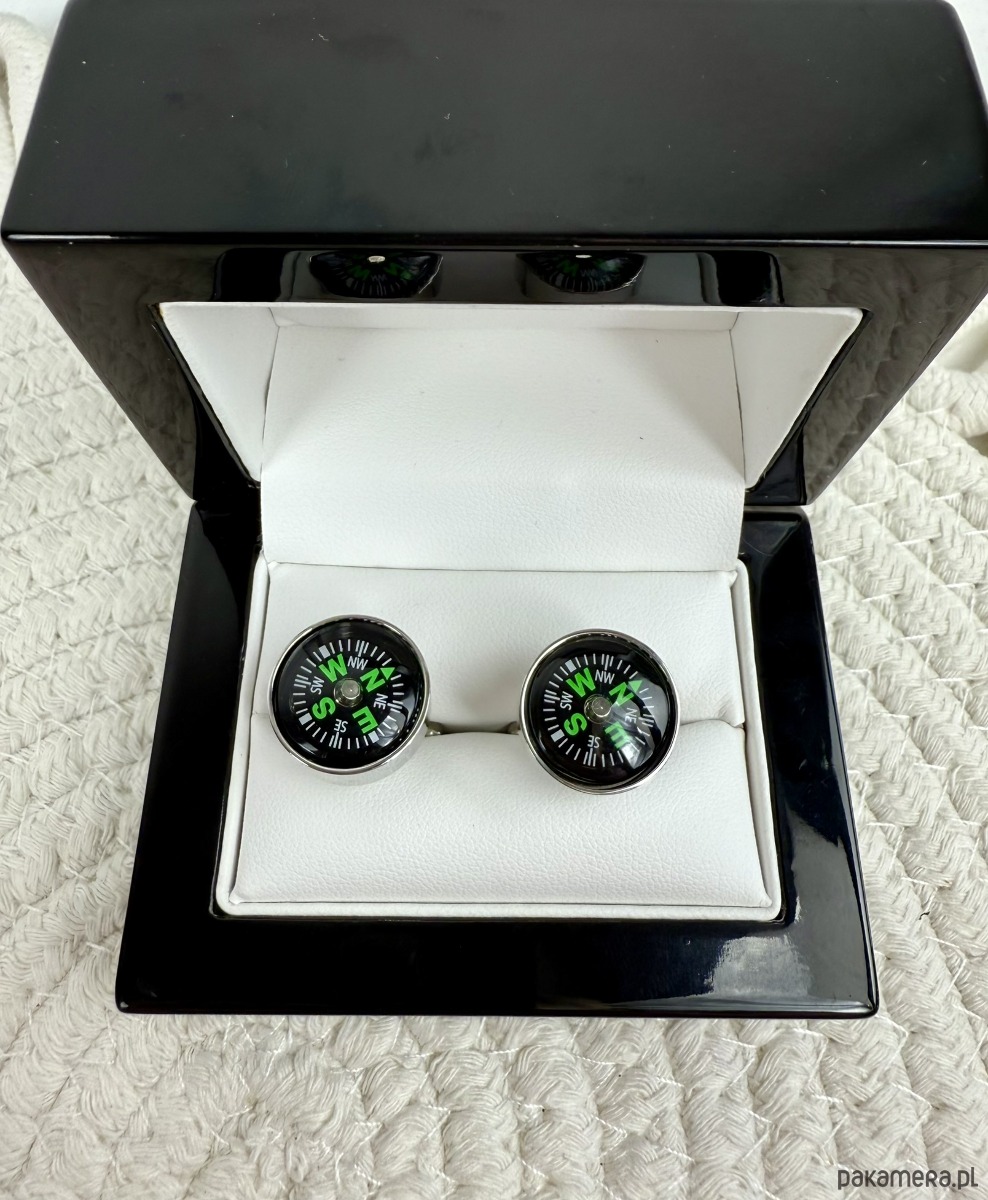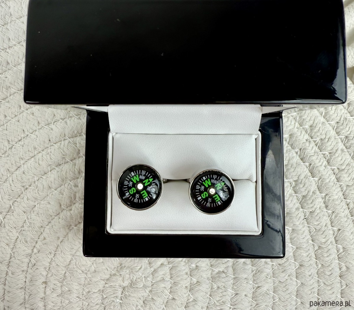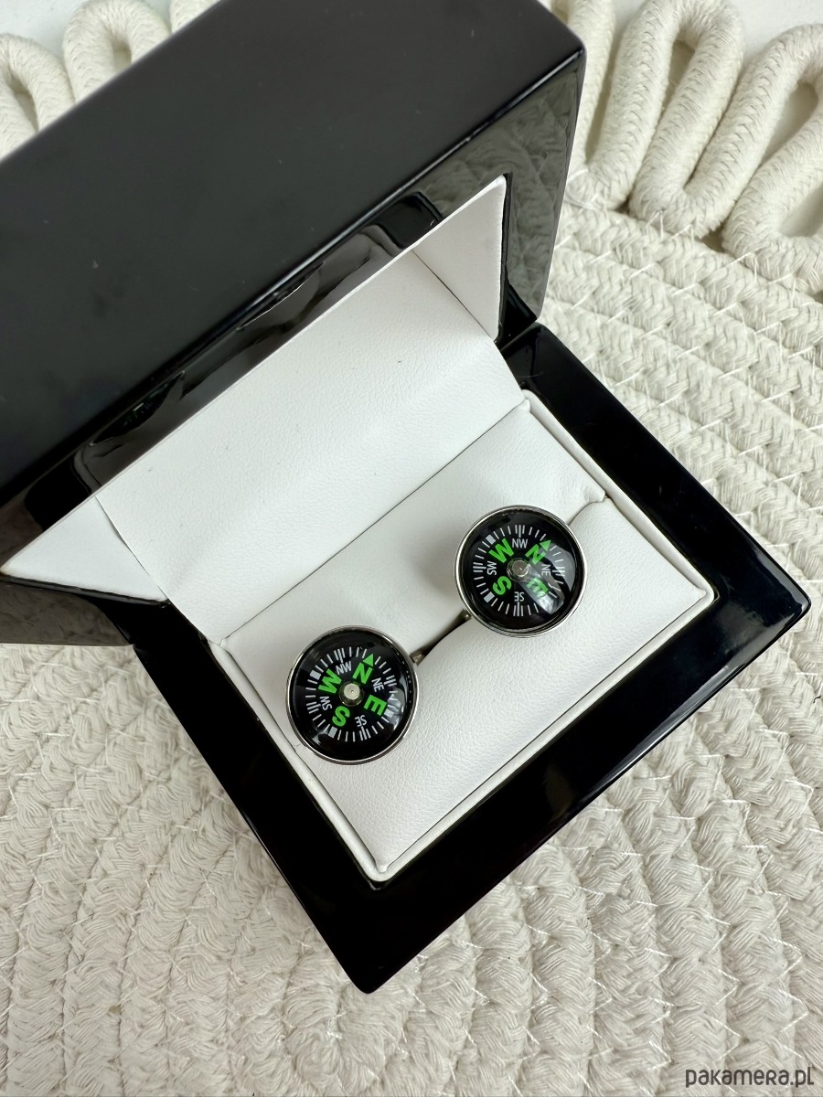 KOMPAS Spinki do mankietów ślub wesel srebrne