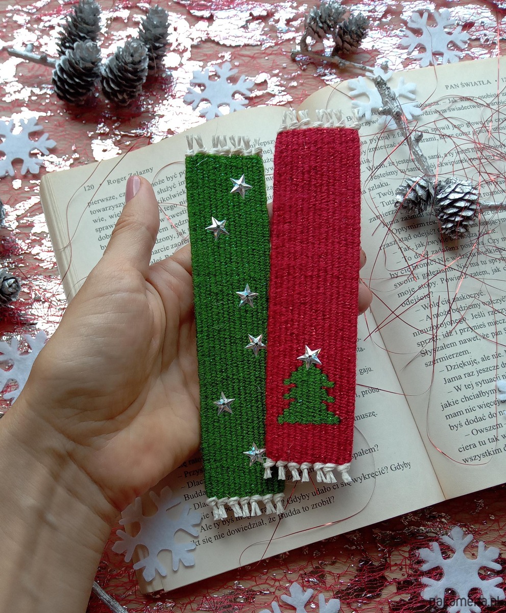 Zestaw dwóch ręcznie tkanych, świątecznych zakładek do książki to idealny sposób, by wprowadzić magię Świąt do każdej lektury.
