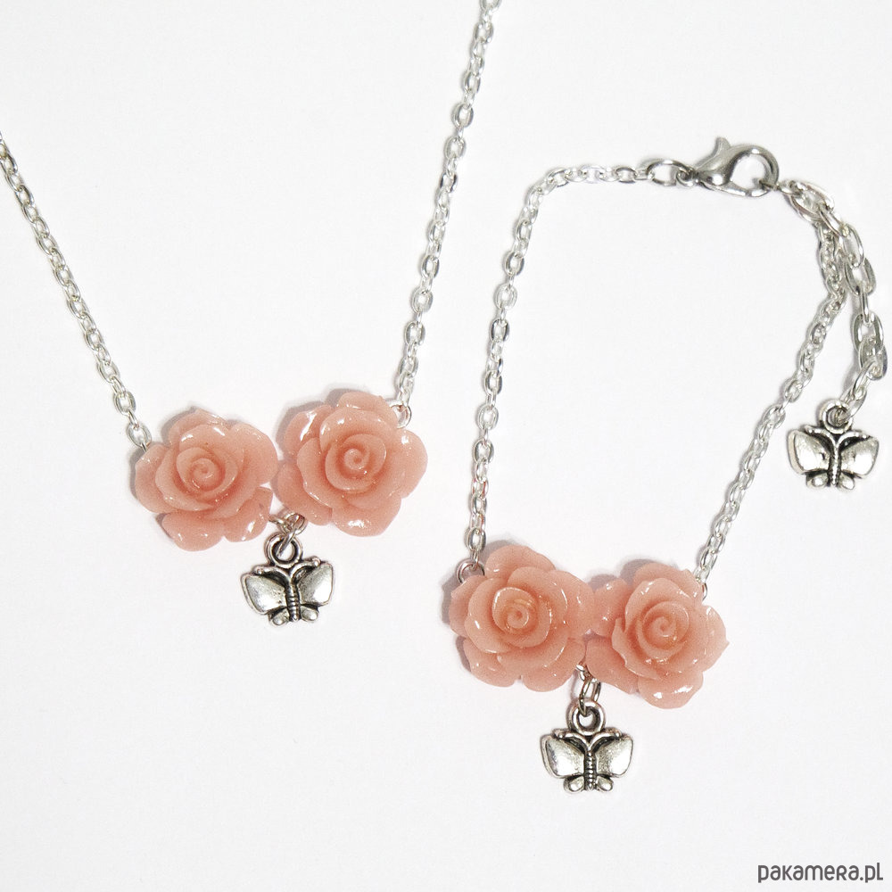 Komplet 2 - Róża pudrowy róż motyl - koral