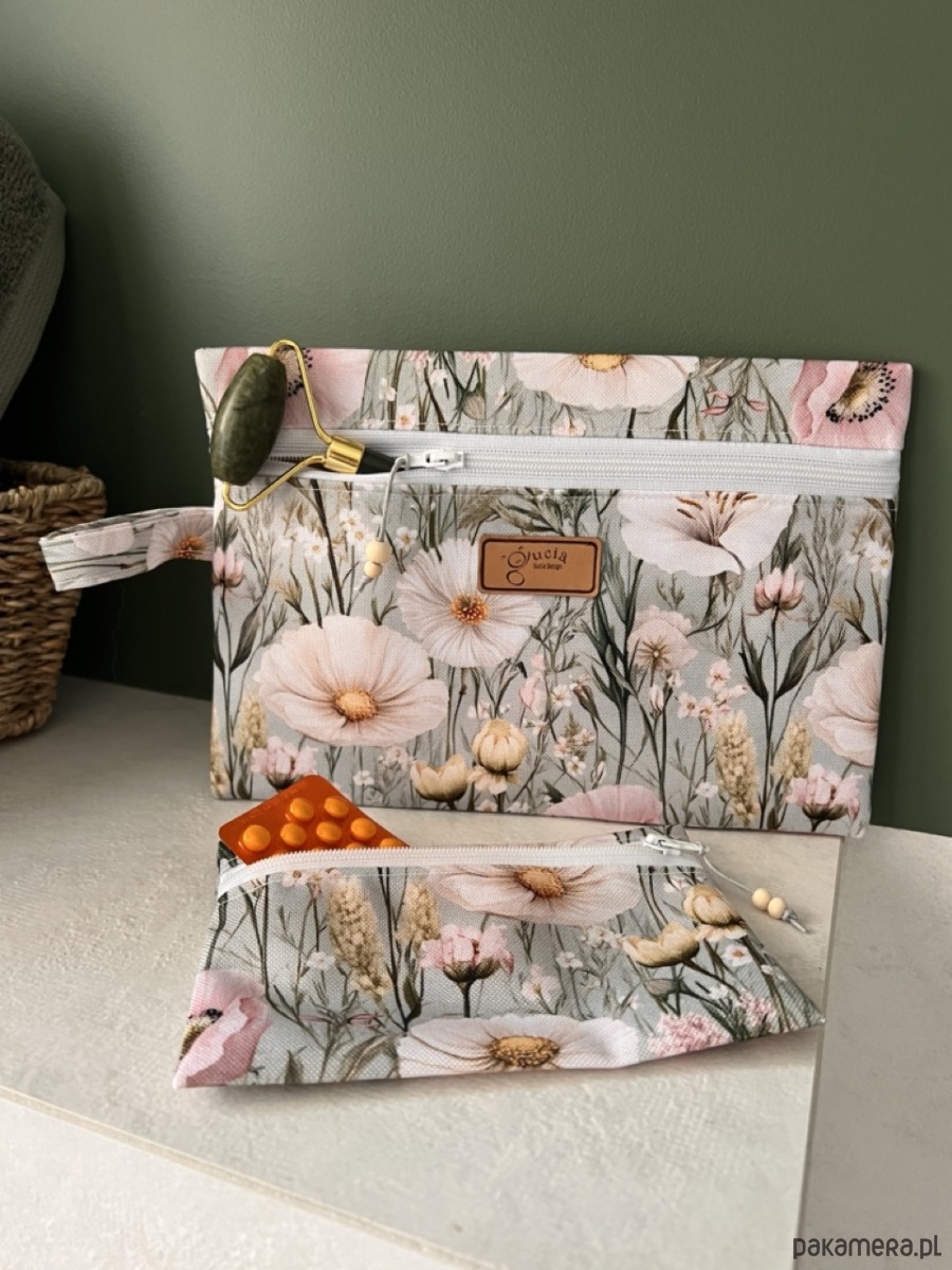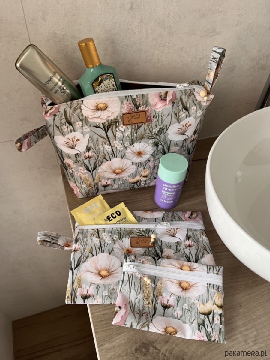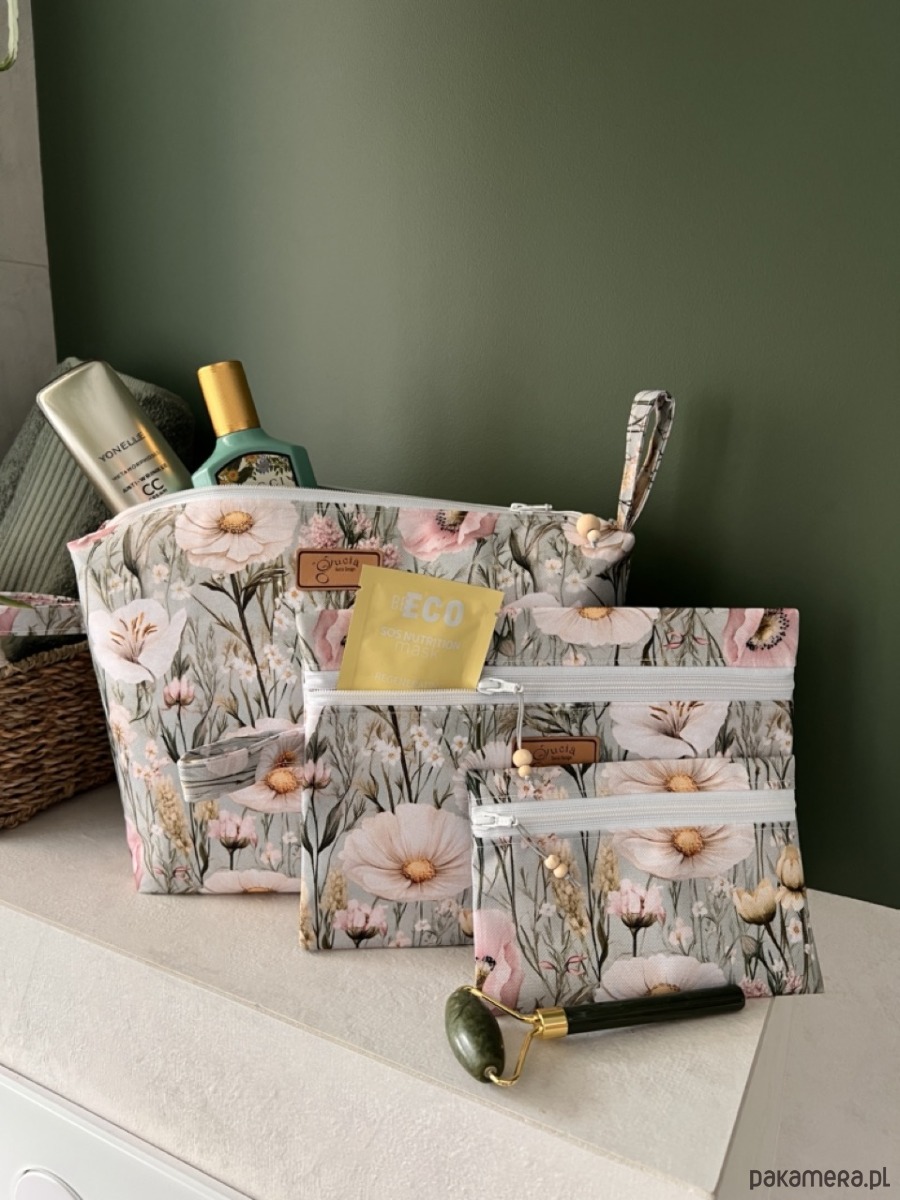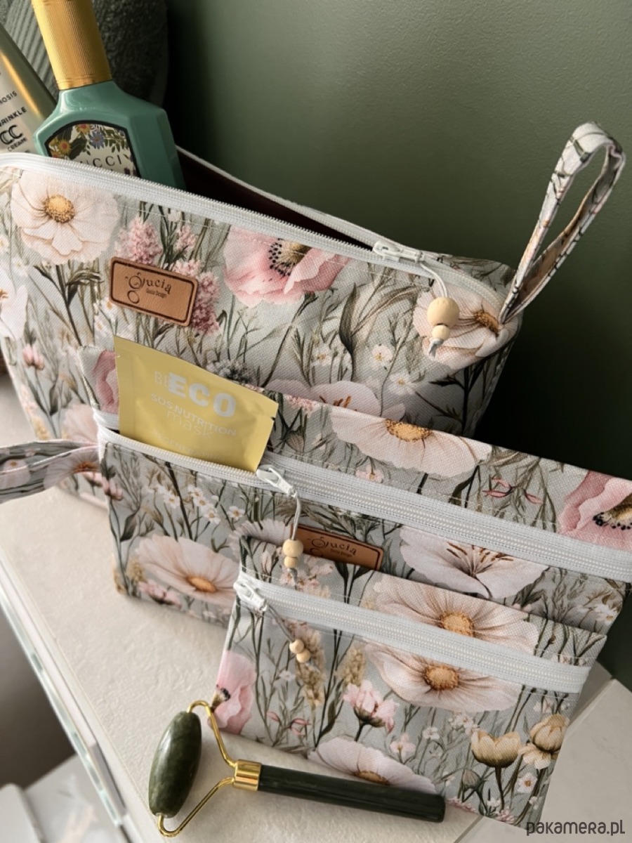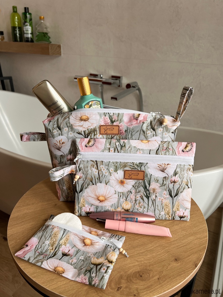 Trzy różne rozmiary sprawiają, że każda kosmetyczka ma swoje zadanie. Duża idealnie sprawdzi się na wyjazdy, do sanatorium i do codziennej pielęgnacji. Średnia będzie świetna na kosmetyki, które warto mieć zawsze pod ręką, a mała doskonale zmieści się w torebce na leki, okulary, dokumenty i drobiazgi.