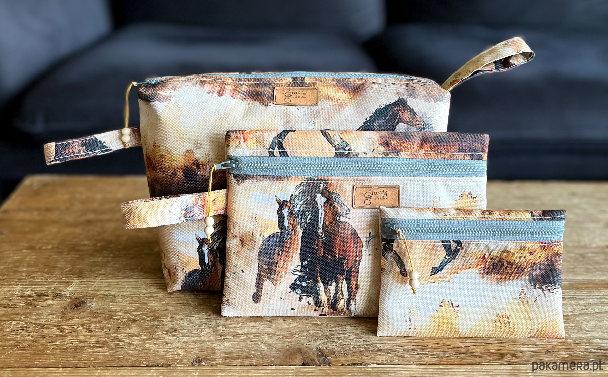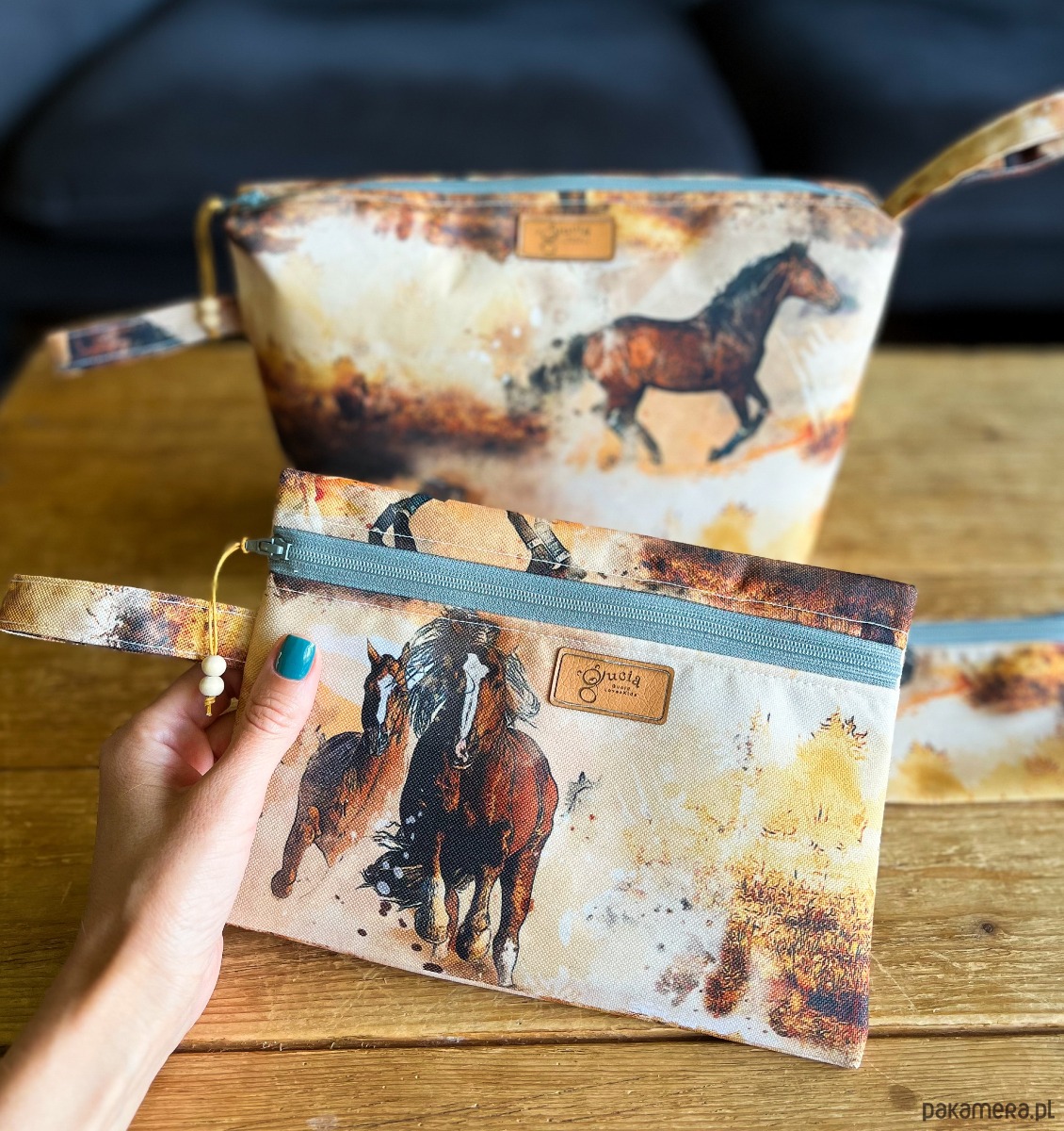 Odkryj wyjątkowy komplet 3 wodoodpornych kosmetyczek z motywem koni - idealny pomysł na prezent dla miłośników koni i natury! Każda kosmetyczka zachwyca oryginalnym wzorem oraz praktycznością, łącząc estetykę z funkcjonalnością.
