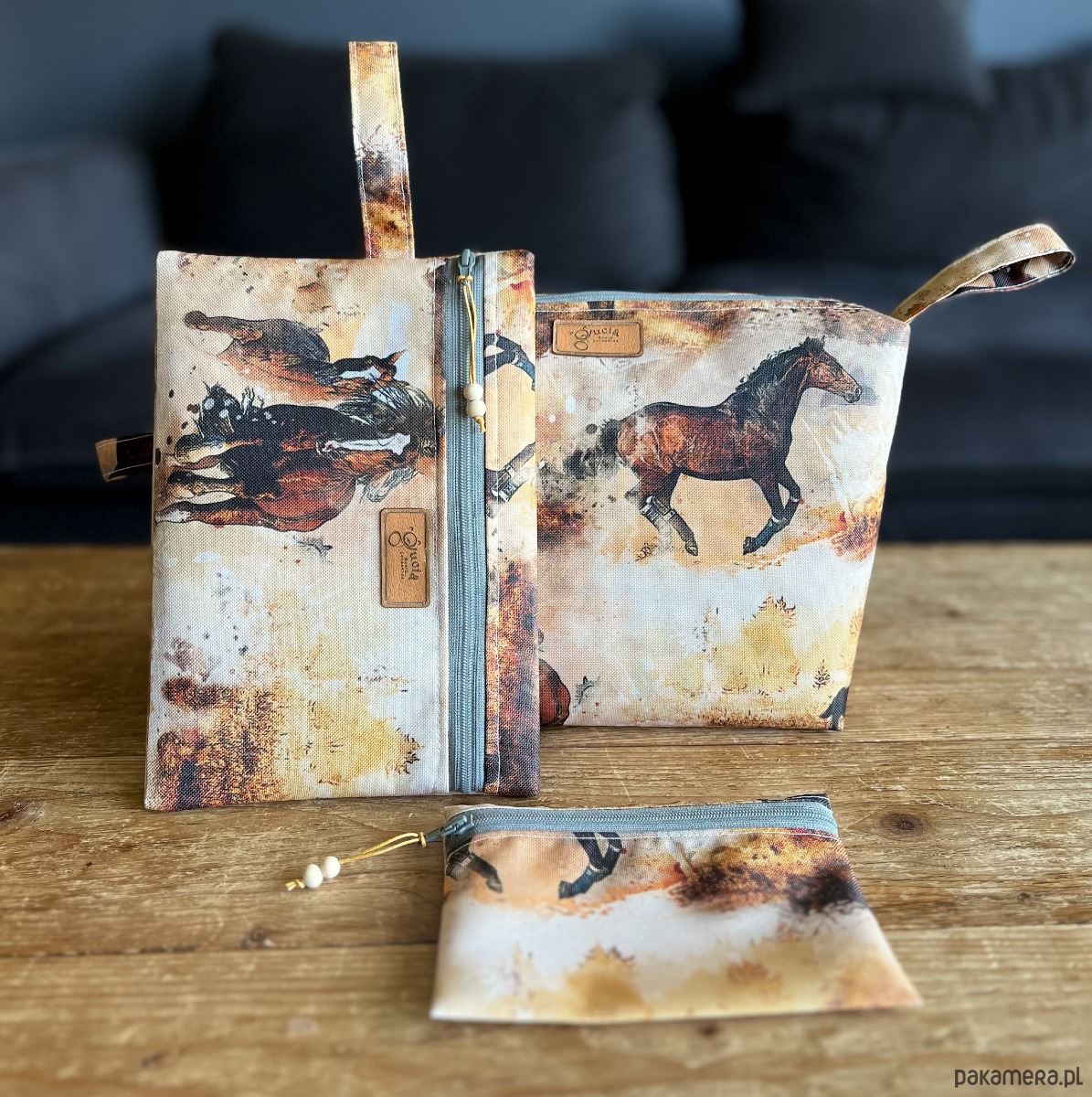 Komplet 3 kosmetyczek wodoodpornych- Konie