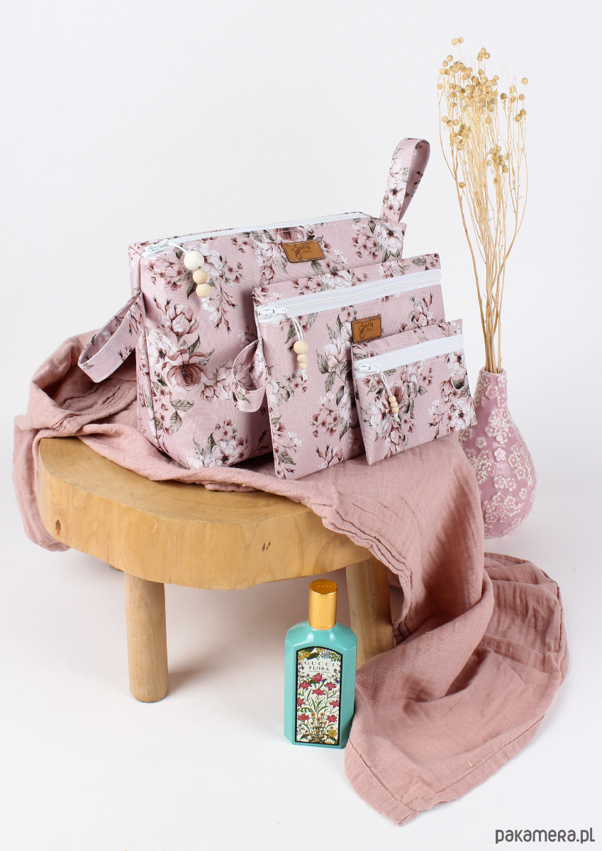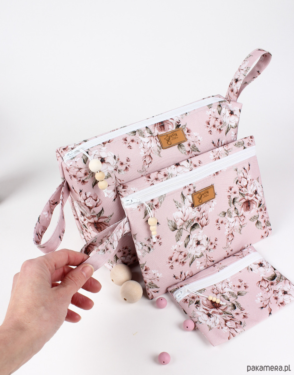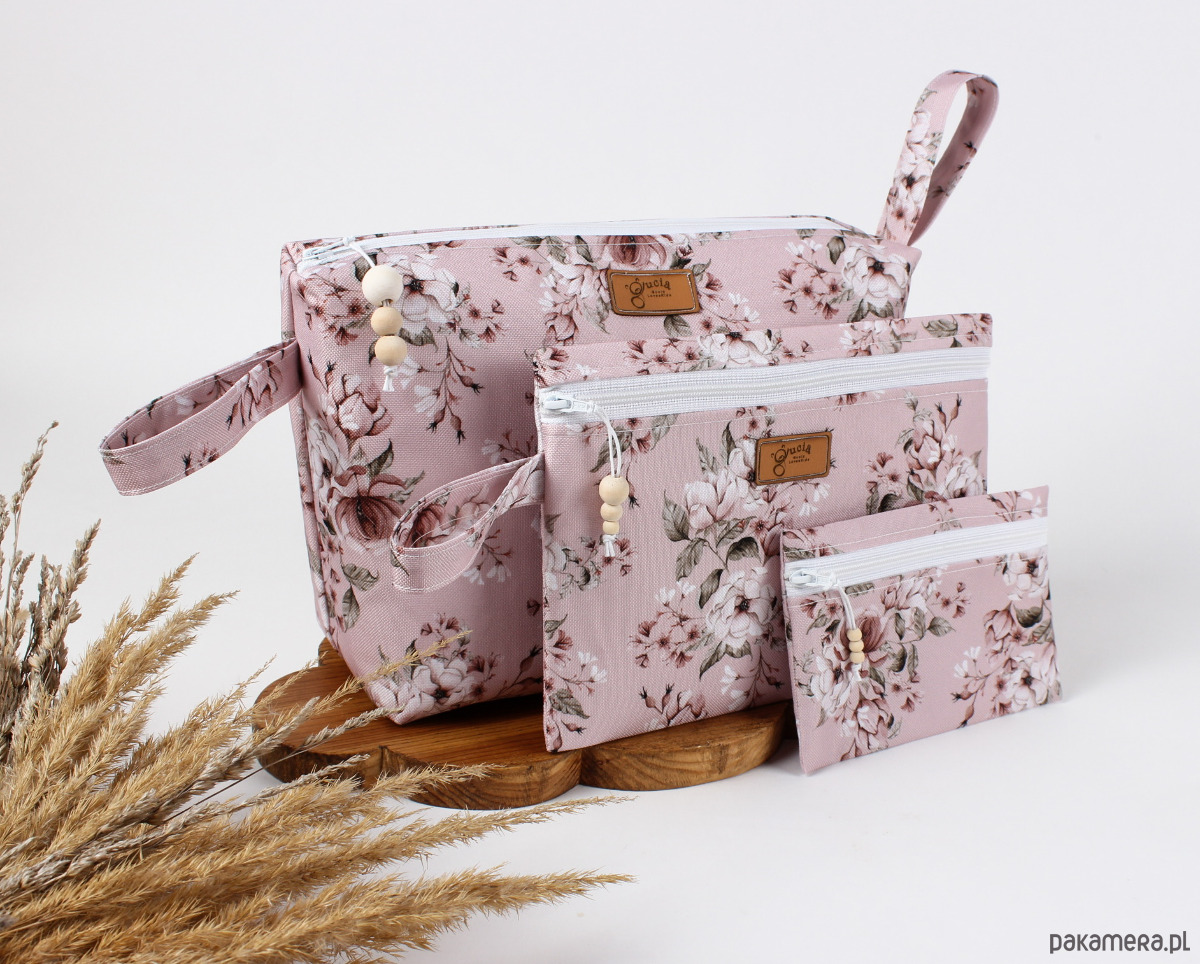 Komplet 3 kosmetyczek wodoodpornych KWIATY