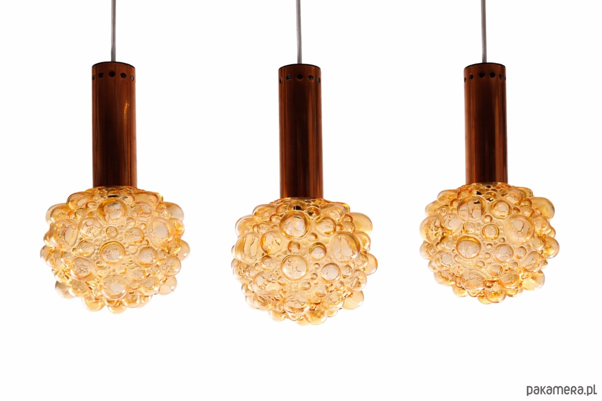 3 × Lampa wisząca HELENA TYNELL – Riihimäen Lasi – Finlandia – szkło bubble – lata 60/70 – komplet