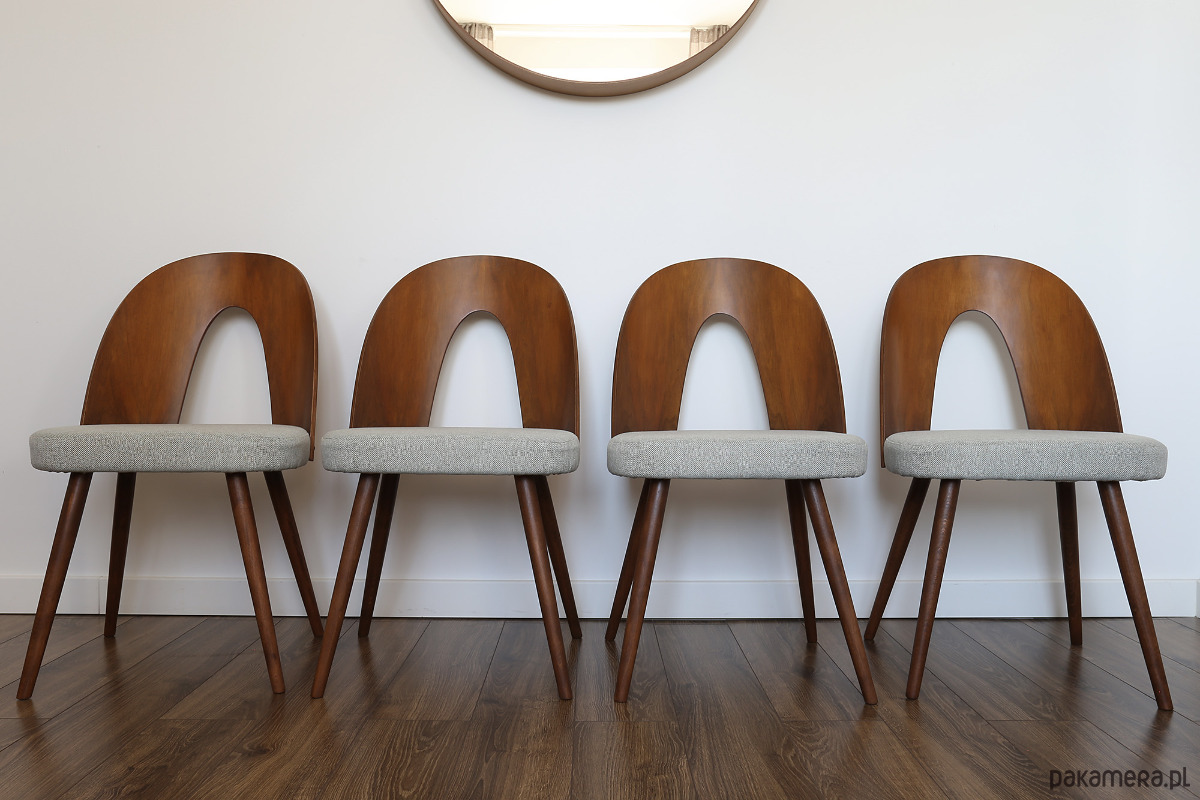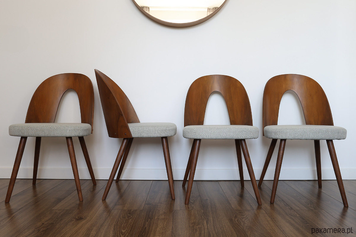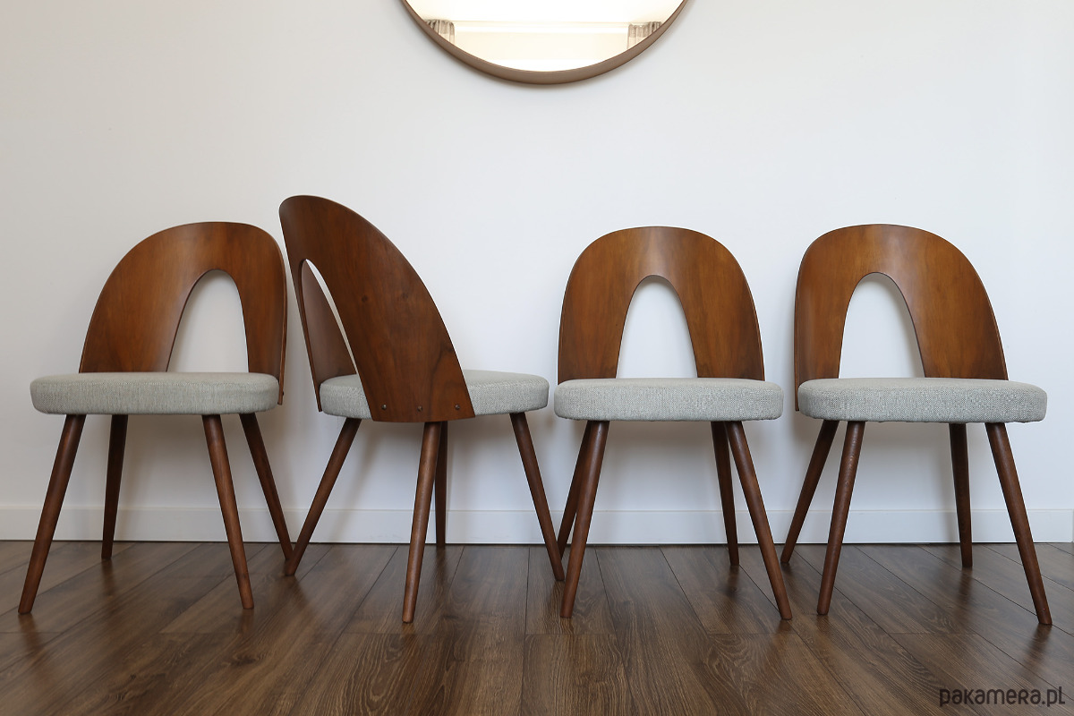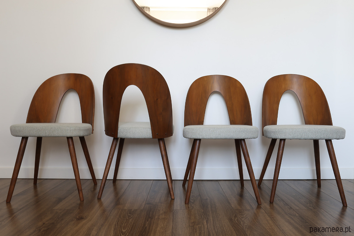 Komplet trzech krzeseł zaprojektowany przez Antonina Sumana w latach 60. XX wieku i wyprodukowany w Czechosłowacji.