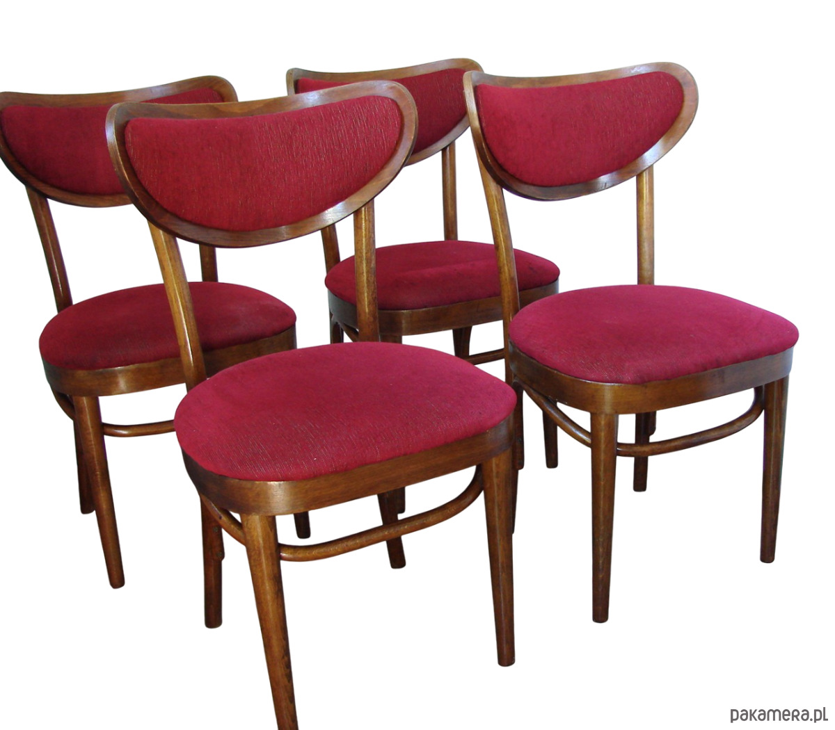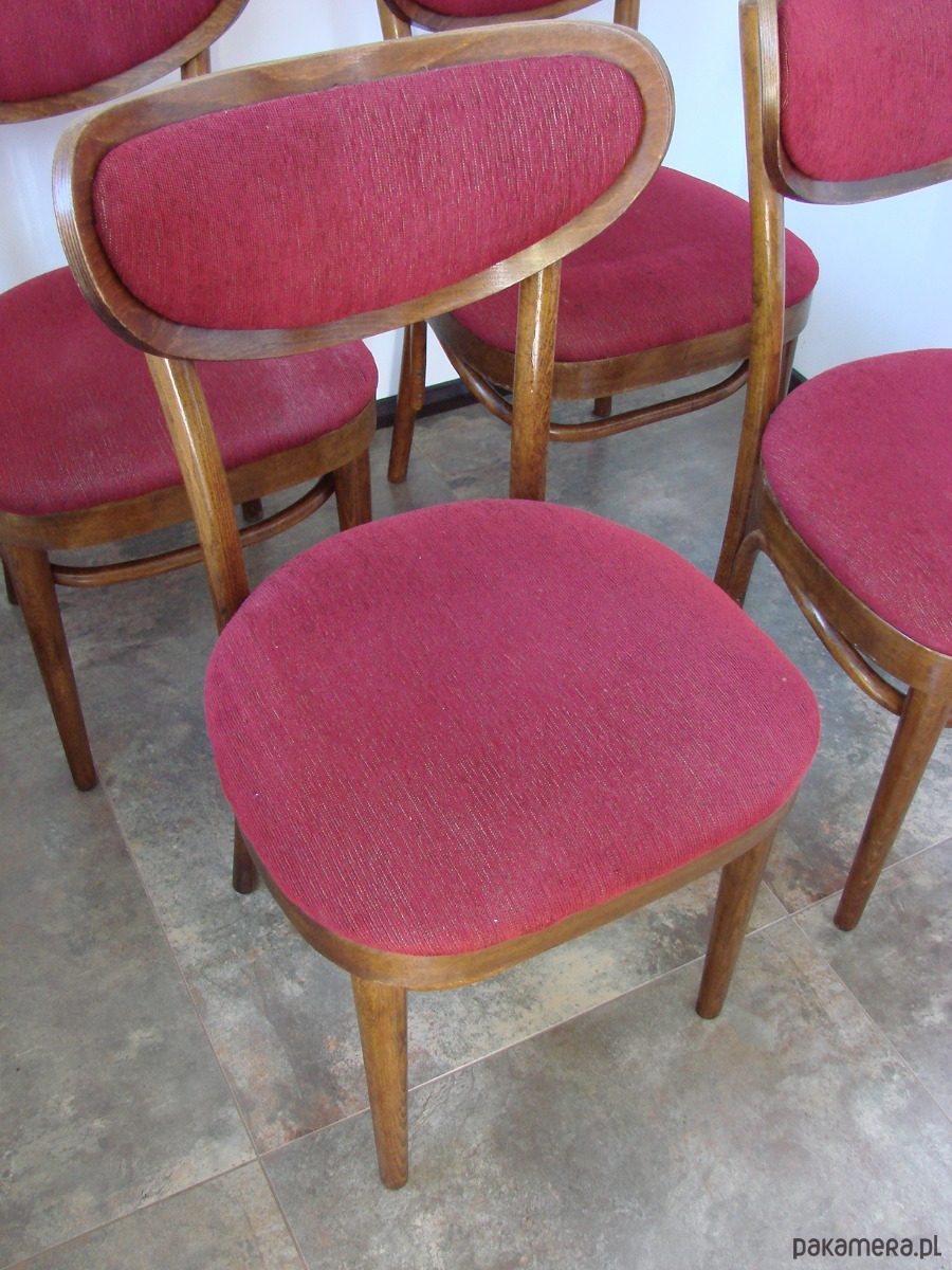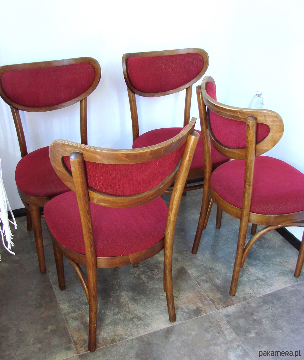 Komplet 4 oryginalnych krzeseł typu Thonet, wyprodukowanych w zakładach w Radomsku w Polsce w latach 60. Krzesła w klasycznym stylu, wykonane z giętego drewna. Zachowane w dobrym stanie, z naturalną patyną czasu. Konstrukcja stabilna, meble w oryginalnym, nerenowowanym stanie – idealne dla kolekcjonerów i miłośników autentycznego designu vintage.