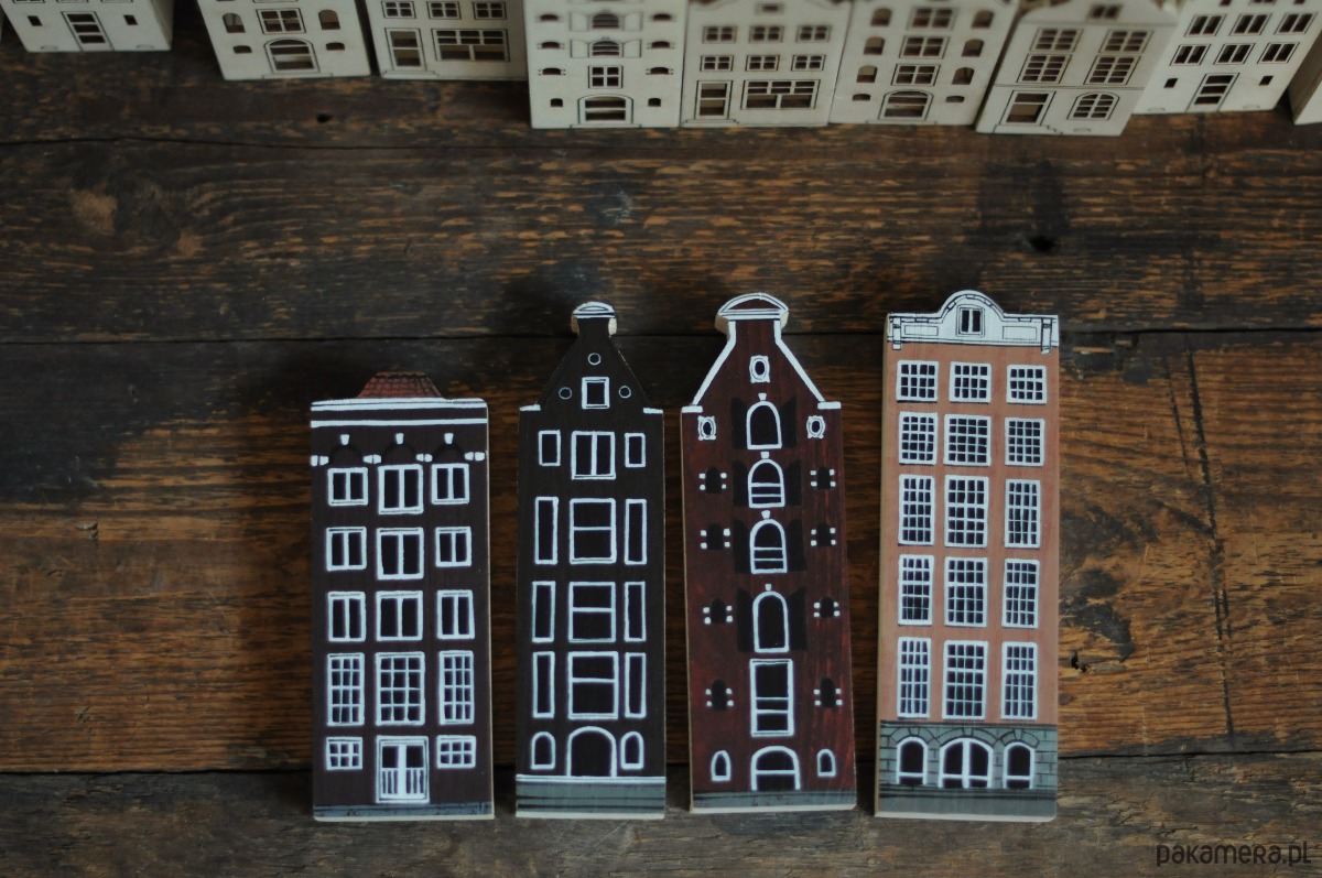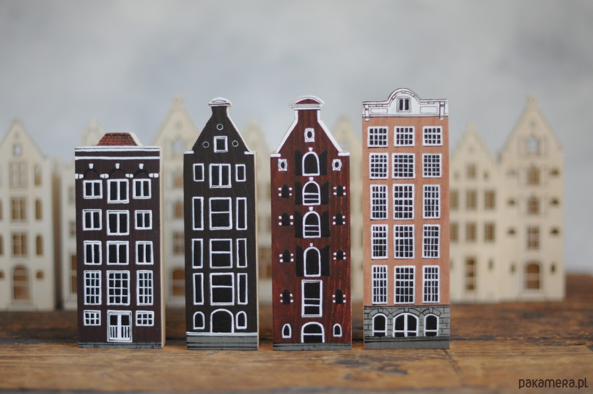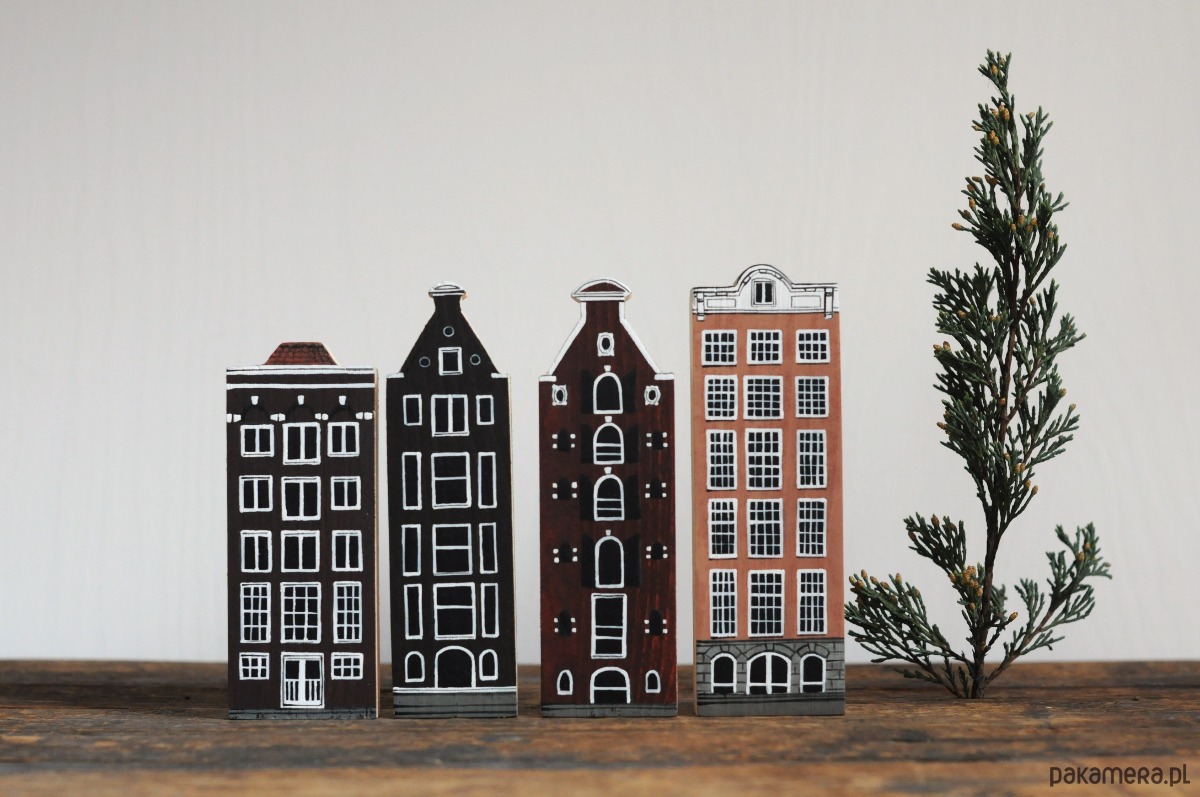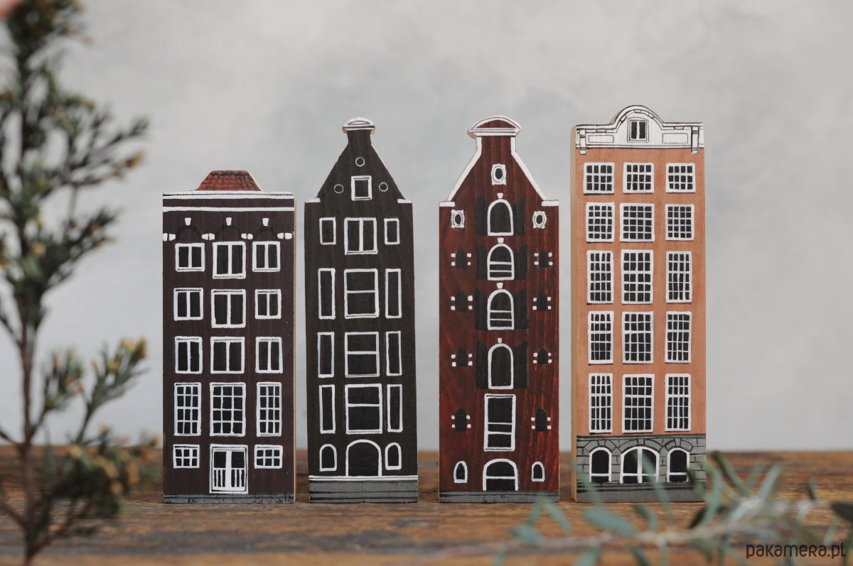 Komplet 4 szt - drewniane domki ręcznie malowane AMSTERDAM