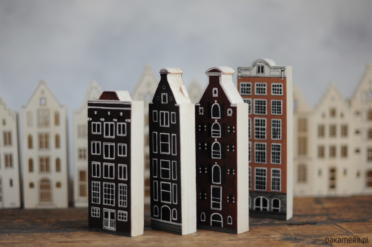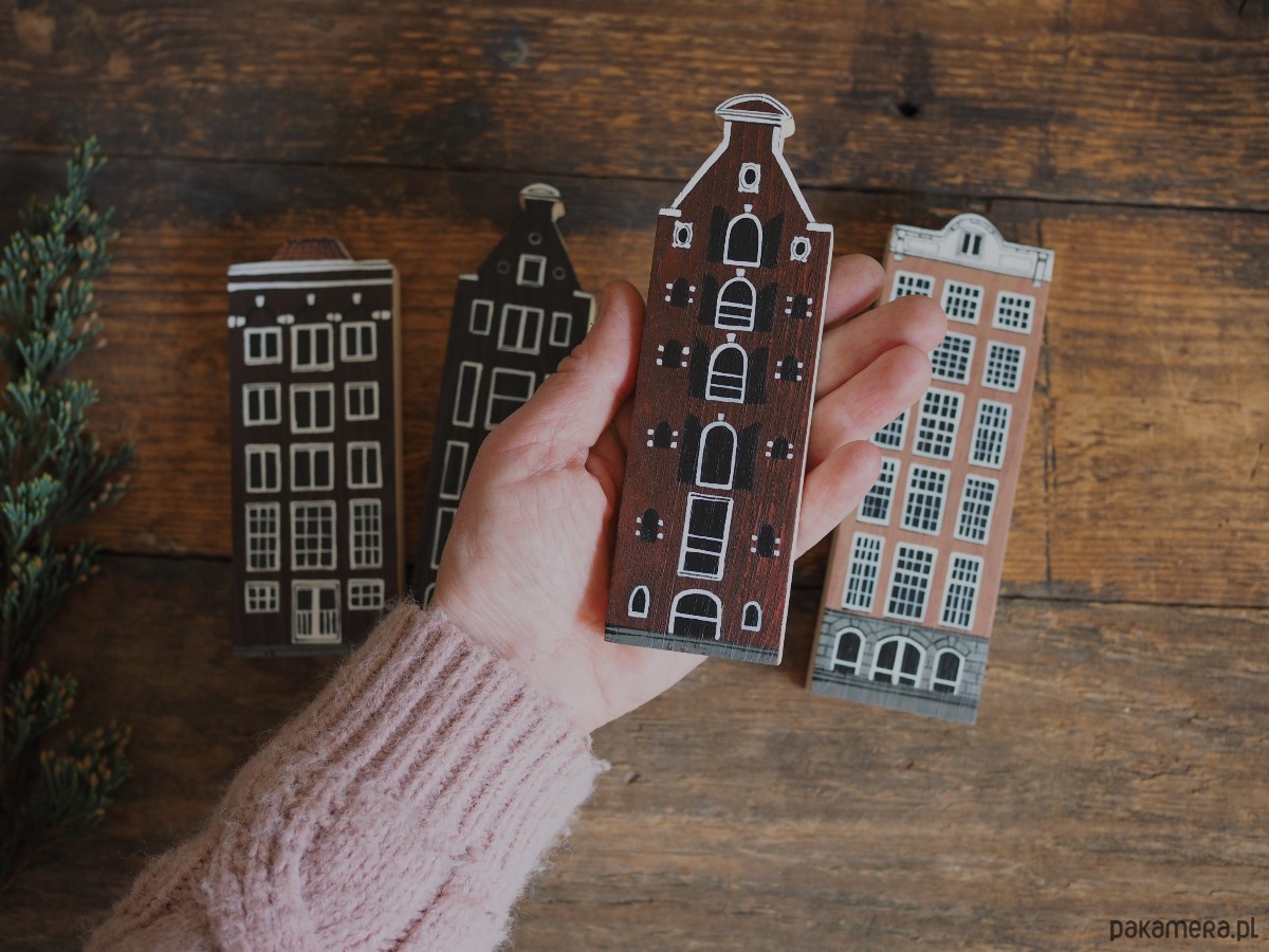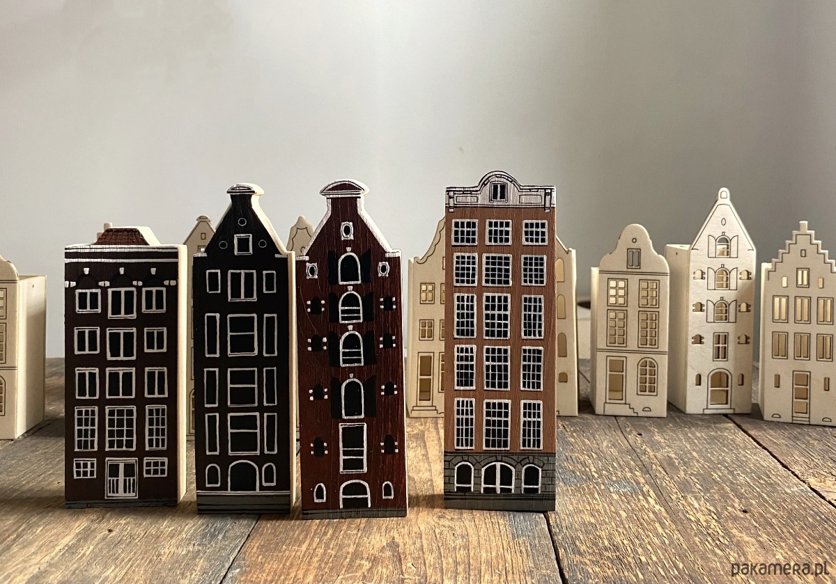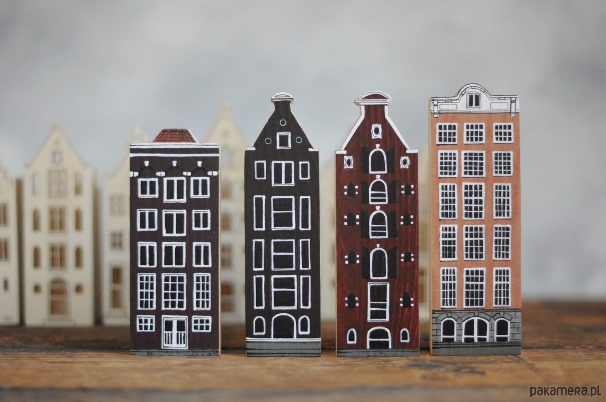 Komplet 4 szt - drewniane domki ręcznie malowane AMSTERDAM