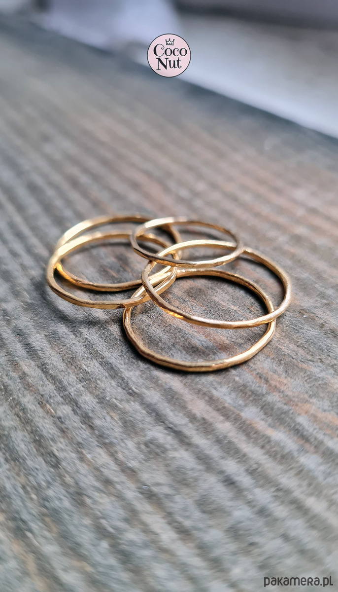 Komplet: 5 cienkich obrączek ze srebra 925, o szerokości ok. 1 mm, obrączki mają nierówną fakturę - są młotkowane.