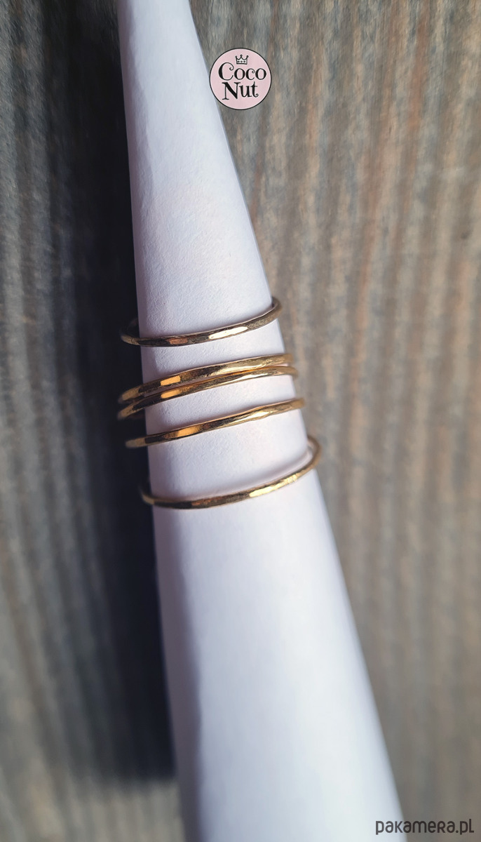 Komplet: 5 cienkich obrączek ze srebra 925, o szerokości ok. 1 mm, obrączki mają nierówną fakturę - są młotkowane.