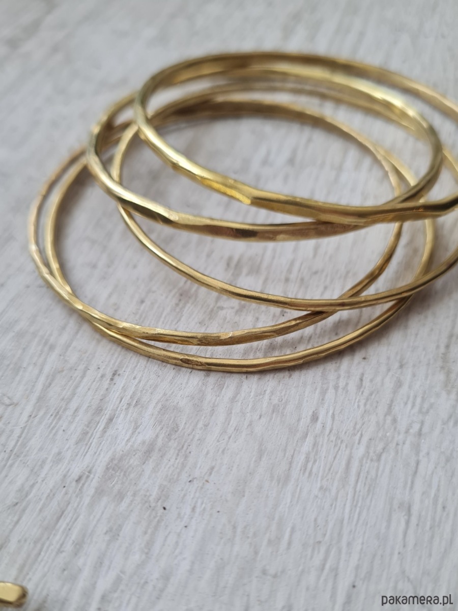Komplet pięciu sztuk młotkowanych bransolet z mosiądzu,