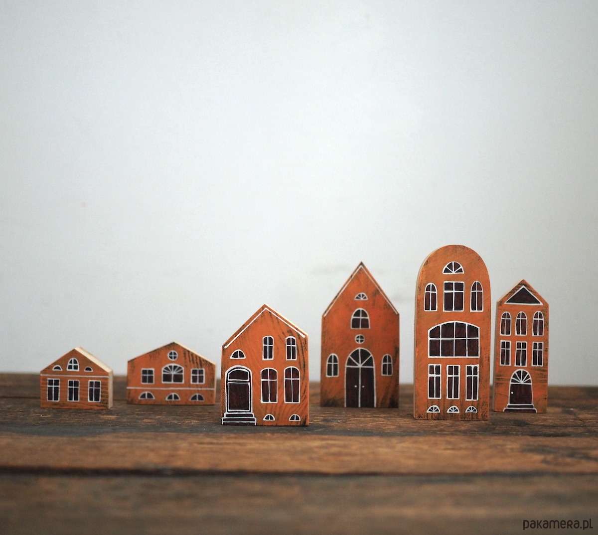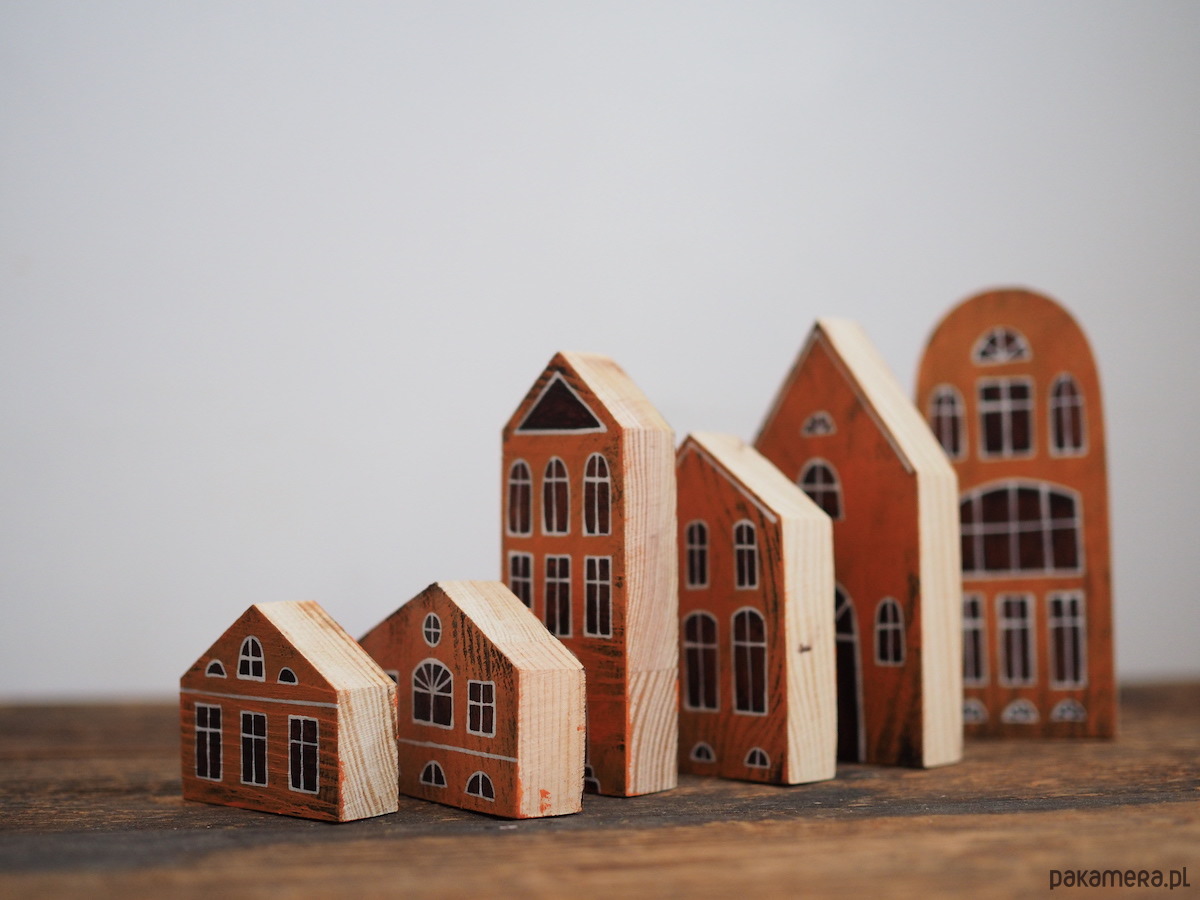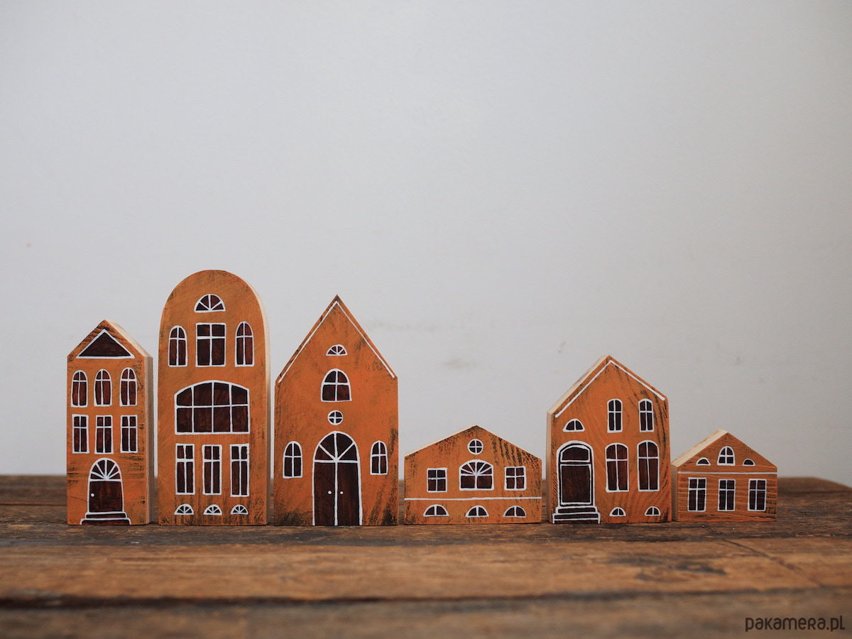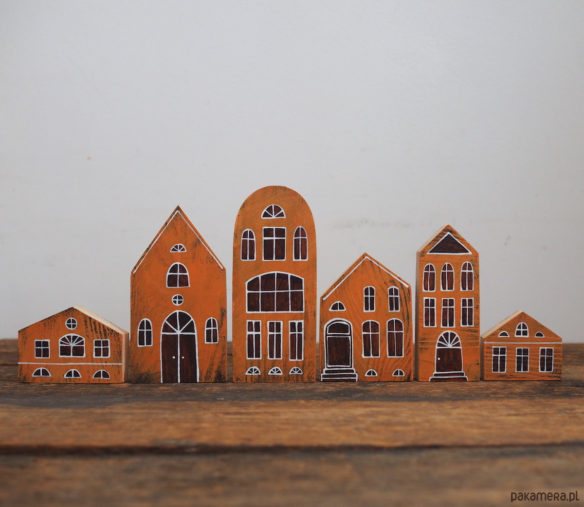 Komplet 6 szt - drewniane domki ręcznie malowane